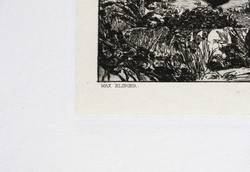 Singer 61 III (von III). – In der Platte links unter der Darstellung gestochene Signatur: ″MAX KLINGER″. Rechts Blattnummer: ″X.″ – Die Szene aus dem Roman Simplicius Simplicissimus in welcher Simplicius Gekd zählt, verortet Klinger in der Heidelandschaft des Spessart. - Gratiger und kontrastreicher Abzug. – Originalrandiges Exemplar. Ohne jeden Mangel, von tadelloser Erhaltung. Sehr guter Zustand.