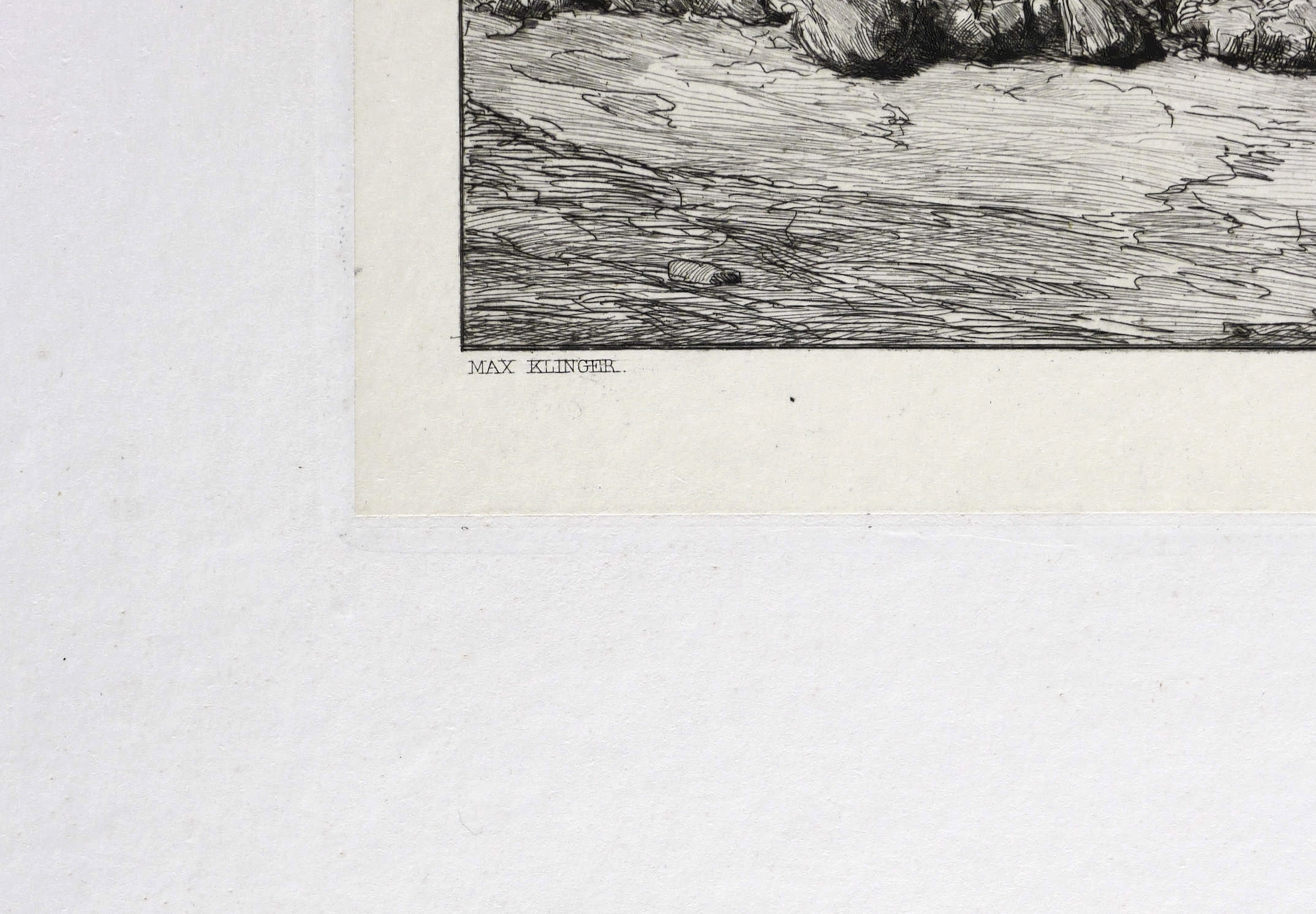 1881. Radierung / Strichätzung, in Schwarz, auf gewalztem China, auf Kupferdruckkarton. – Originale Künstlergrafik, von Max Klinger. – 29,5 x 23,3 cm (Darstellung / Einfassungslinie), 33,9 x 27,1 cm (Platte), 63 x 45 cm (Blatt).
