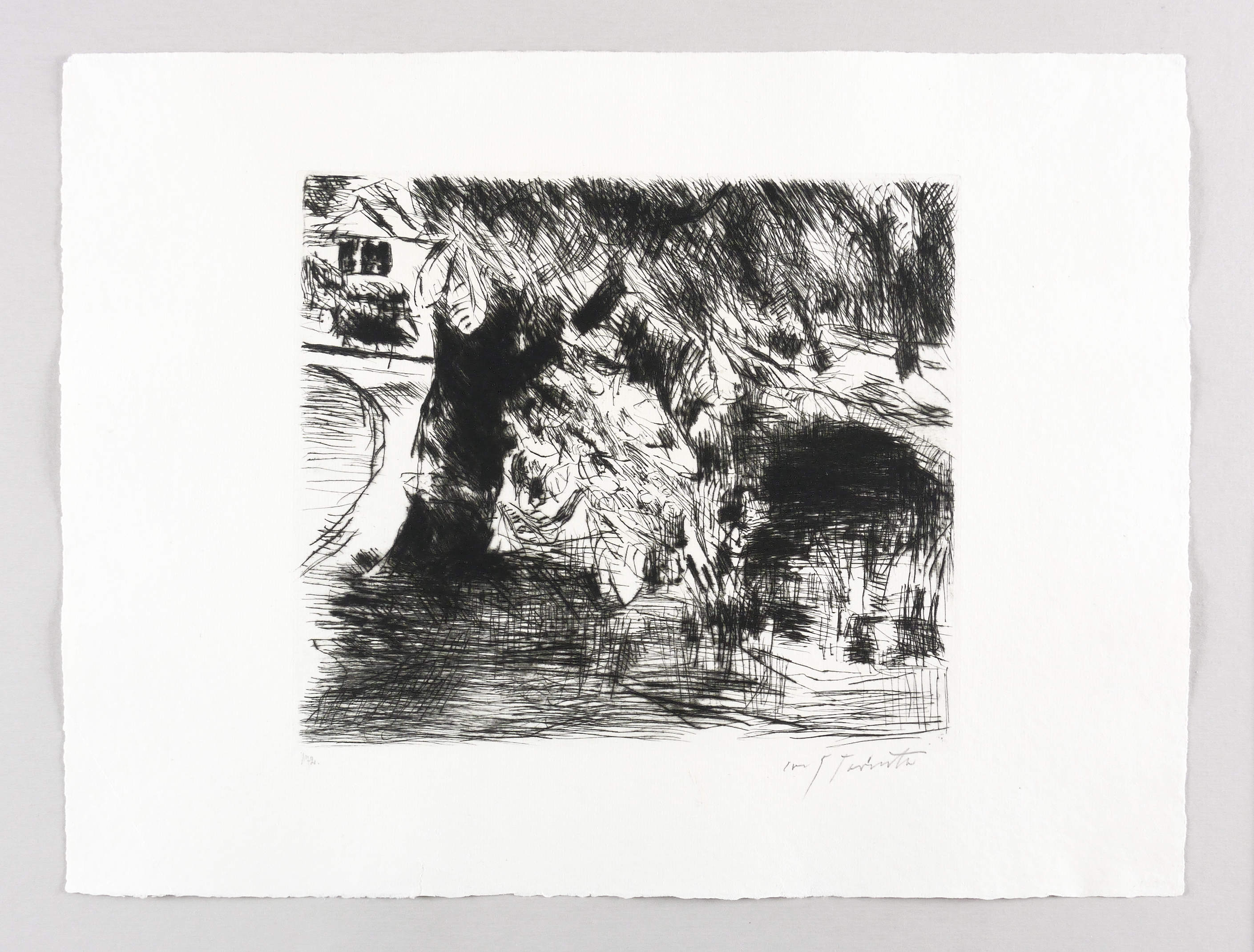 1923. Radierung / Kaltnadel, in Schwarz, auf feinstem hellchamois Bütten. – Originale Künstlergrafik, von Lovis Corinth. – Auflage Exemplar Nr. 172/200. – 24,1 x 27,8 cm (Darstellung / Platte), 36 x 47 cm (Blatt).