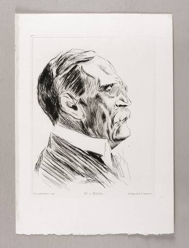 Wilhelm von Bode (1845 Calvörde - 1929 Berlin). Eigentlich Arnold Wilhelm Bode, 1914 geadelt zu Wilhelm von Bode. Deutscher Kunsthistoriker und Museumsdirektor. Gilt als Vater des modernen Museumswesens. 1889-1914 Gründung und Leitung der Städtischen Kunstsammlungen Straßburg (im Deutsch-Französischen Krieg vernichtet). 1904 Gründung und Leitung des Kaiser-Friedrich-Museum (heute Bode-Museum) auf der Museumsinsel in Berlin. Gestaltete als Generaldirektor der Staatlichen Kunstsammlungen die wesentlichen Grundzüge der Berliner Kunstsammlungen. Veröffentlichte aber auch wichtige kunstwissenschaftliche Arbeiten zur Geschichte der deutschen, niederländischen und italienischen Malerei und Plastik.