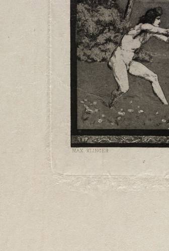 Singer 35 IV (von VIII). – In der Platte links unten gestochene Signatur: ″MAX KLINGER″. Oben links und rechts bezeichnet: ″OP. II. // XI.″ – Schöner kontrastreicher Abzug mit allen Feinheiten von der sehr frischen Platte. – Ohne Mängel. Tadellos. Sehr guter Zustand.