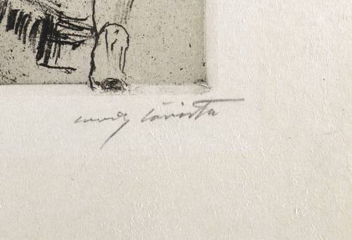 1911. Radierung / Vernis mou, in Schwarz, mit Plattenton, auf hellchamois Velin. – Originale Künstlergrafik, von Lovis Corinth. – Auflage 10 Exemplare. – 20,2 x 14,2 cm (Darstellung / Druckbild), 20,9 x 14,9 cm (Platte), 31 x 25 cm (Blatt).
