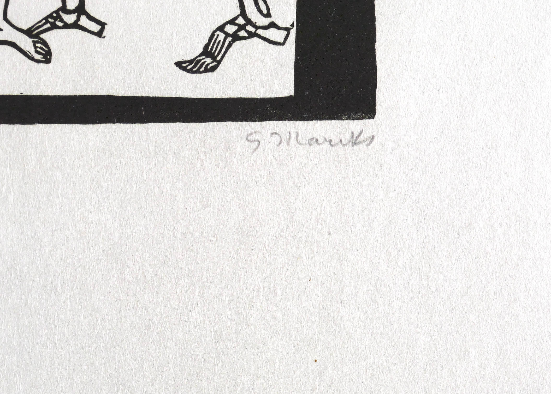 1959. Holzschnitt, in Schwarz, auf feinem hellem Japan. – Originale Künstlergrafik, von Gerhard Marcks. – Auflage Exemplar Nr. 23/50. – 25,6 x 18,3 cm (Darstellung / Druckbild), 56 x 35 cm (Blatt).