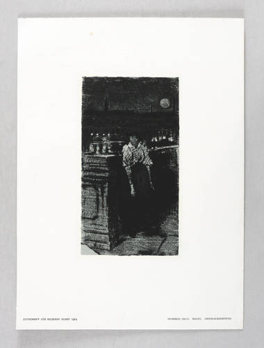 Rosenbach 14 d (von d). – Aus: Zeitschrift für bildende Kunst (Leipzig: E.A. Seemann 1904), Bd. 15. – Nicht handsigniert. In der Platte links unten Signatur und Jahr: ″Z. 95″. Im Blattrand rechts unten typografisch bezeichnet: ″HEINRICH ZILLE. NACHT. ORIGINALRADIERUNG″. Links Bandbezeichnung. – Originalgrafische Beilage. – Originalrandiges Exemplar. Kleiner bräunlicher Fleck im oberen Blattrand weit außerhalb der Darstellung. Insgesamt doch guter Zustand.