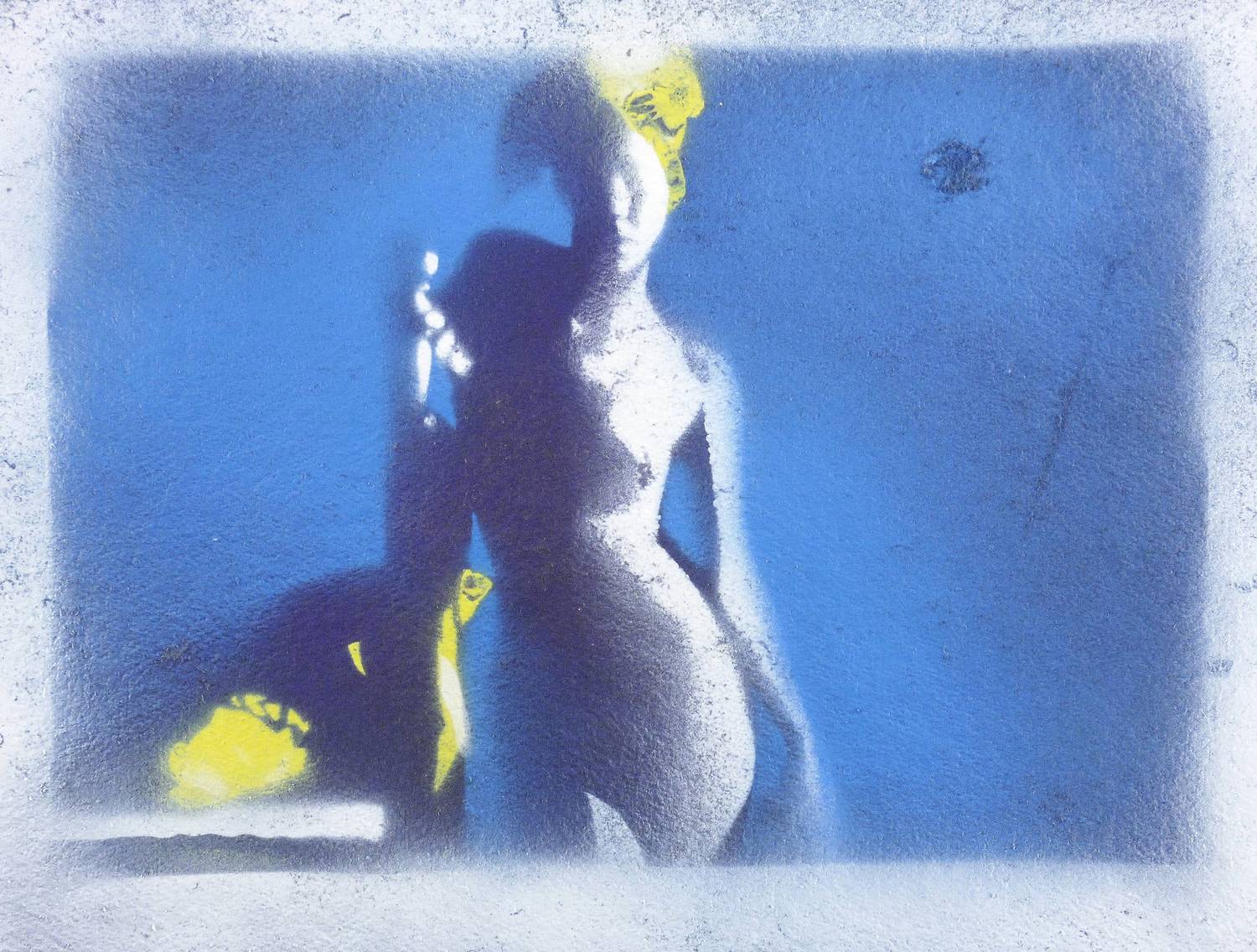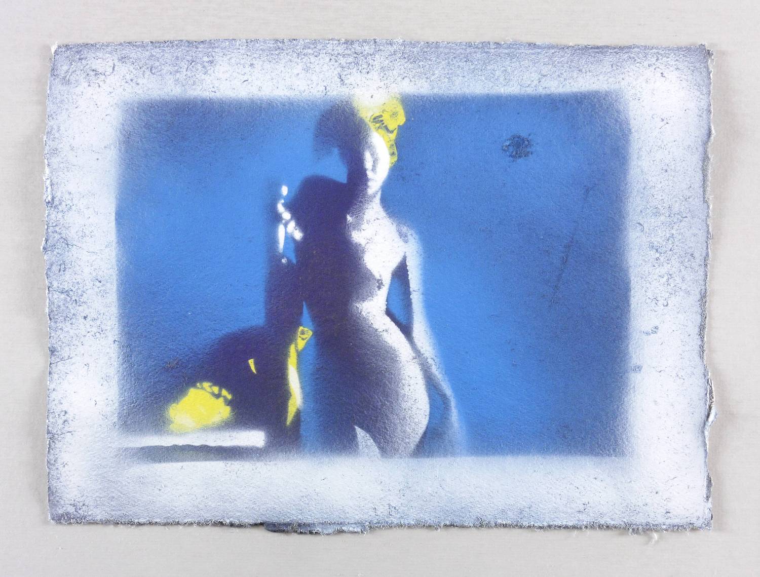 2023. Mischtechnik, teils Pochoir, gespritzt, auf weißem Papier. – Originale Künstlergrafik, von Leonhard Wachter. – Künstlerexemplar (e.a.). – 28,0 x 38,0 cm (Darstellung / Blatt).