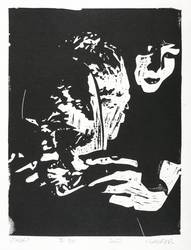2022. Linolschnitt, in Schwarz, auf weißem Velin. – Originale Künstlergrafik, von Leonhard Wachter. – Auflage Exemplar Nr. 1/5. – 50,0 x 35,0 cm (Darstellung / Blatt).