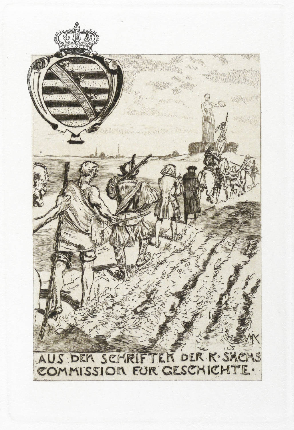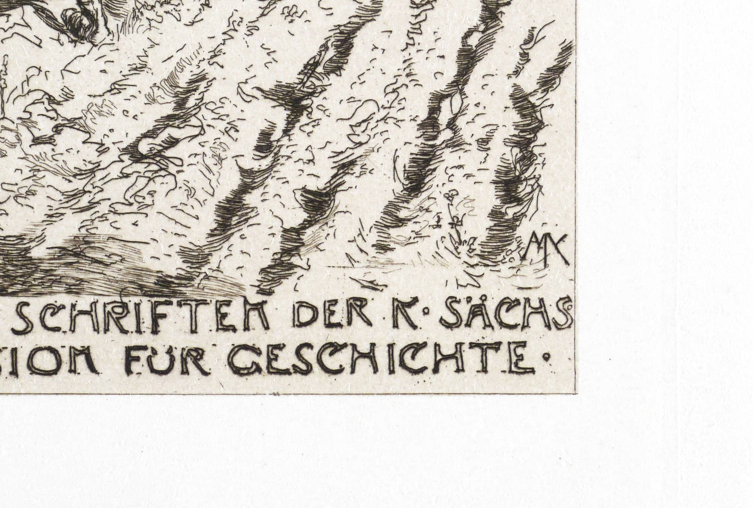 Singer 287 III. – In der Platte rechts unten signiert: ″MK″. Unten Inschrift: ″AUS DEM SCHRIFTEN DER K. SÄCHS COMMISSION FÜR GESCHICHTE″. – Sehr guter Zustand.