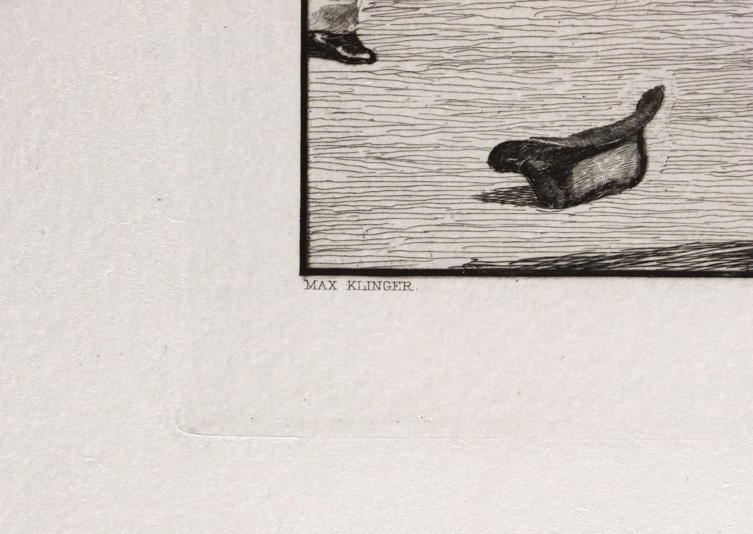 1882/1887. Radierung / Strichätzung & Aquatinta, in Schwarz, auf feinem weißlichem Bütten. – Originale Künstlergrafik, von Max Klinger. – 41,2 x 27,2 cm (Darstellung / Druckbild), 46,3 x 31,7 cm (Platte), 62 x 43 cm (Blatt).