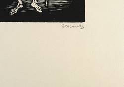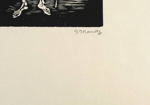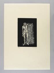 1977. Holzschnitt, in Schwarz, auf gelbem Velinkarton. – Originale Künstlergrafik, von Gerhard Marcks. – Auflage Exemplar Nr. 55/100. – 25,7 x 17,3 cm (Darstellung / Druckstock), 42 x 60 cm (Blatt).