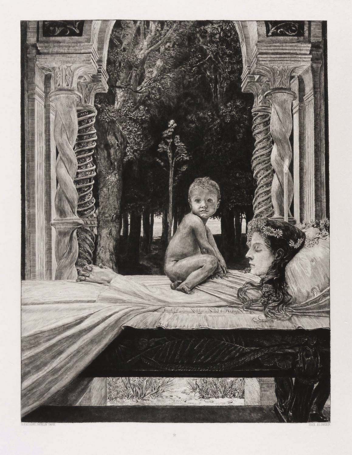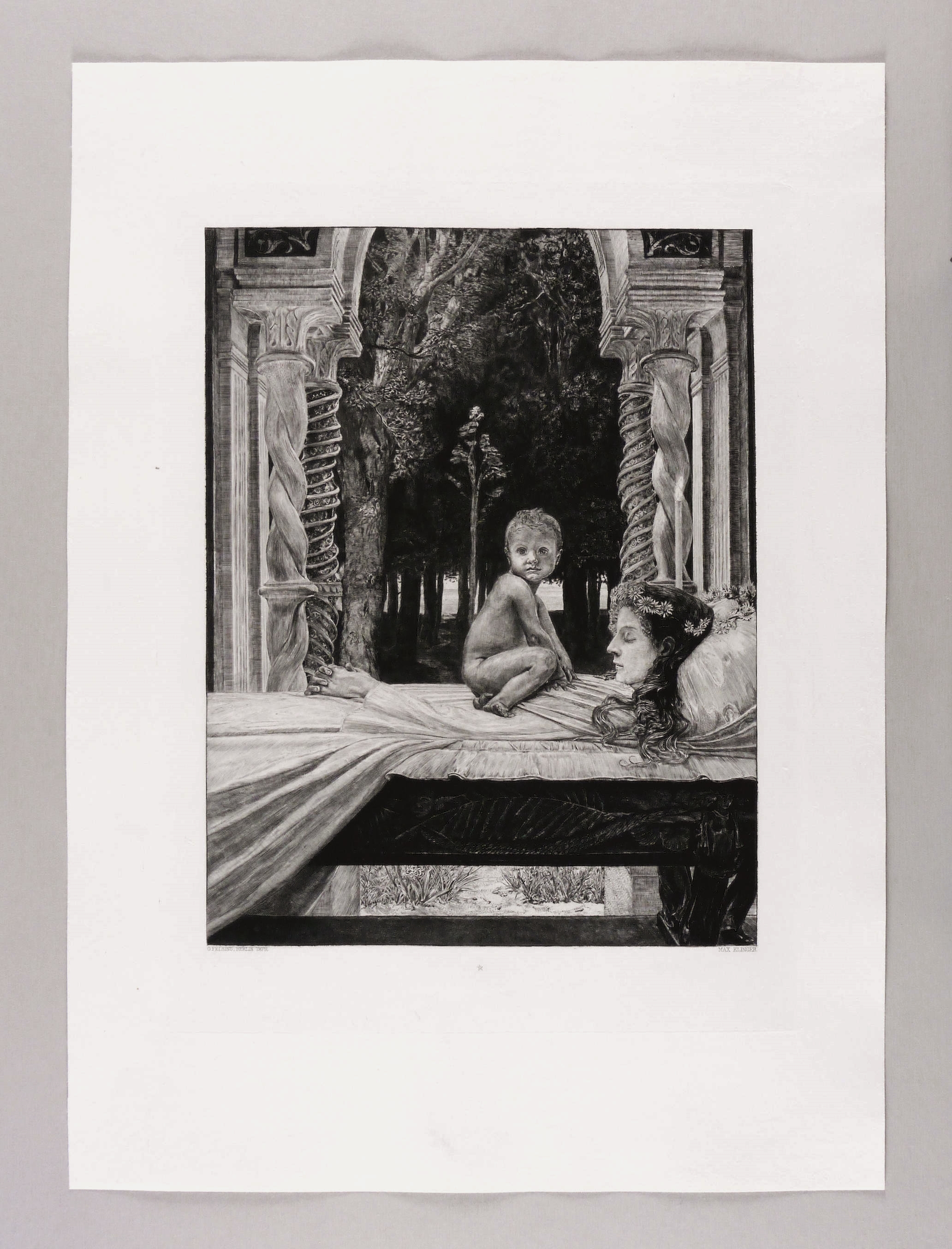 1889. Radierung / Strichätzung & Aquatinta, in Schwarz, auf feinem hellgelbem Bütten. – Originale Künstlergrafik, von Max Klinger. – 39,0 x 29,9 cm (Darstellung / Druckbild), 46,0 x 35,0 cm (Platte), 62 x 45 cm (Blatt).