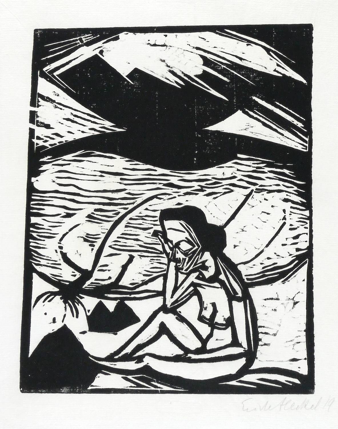 1919. Holzschnitt, in Schwarz, auf feinstem hellchamois Bütten. – Originale Künstlergrafik, von Erich Heckel. – 27,3 x 21,8 cm (Darstellung / Druckbild), 61 x 48 cm (Blatt).