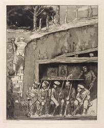 Max Klinger (1857 Leipzig - 1920 Großjena). Deutscher Bildhauer, Maler und Grafiker des Symbolismus. 1874/75 Studium an der Großherzoglich Badischen Kunstschule in Karlsruhe bei Karl Gussow und Ludwig Des Coudres, 1875 an der Königlichen Akademie der Künste in Berlin. 1878 präsentierte Klinger zum ersten Mal seine Gemälde in der 52. Ausstellung der Königlichen Akademie der Künste in Berlin. Ab 1879 lebte er völlig zurückgezogen in Brüssel und beschäftigt sich intensiv mit Radierung und Aquatinta. Aufenthalte in Brüssel, München, Paris und Rom. Großer Erfolg als Graphiker, u.a. mit dem Radierzyklus "Paraphrase über den Fund eines Handschuhs" (1881). Klinger zählt zu den wichtigsten Vertretern der polychromen Plastik. Zu seinen Hauptwerken zählen u.a. die Skulpturen "Beethoven", "Die neue Salome" und "Kassandra". Eine sozialkritische Sicht beweist Klinger in den Radierzyklen, „Dramen“ und „Ein Leben“. Zahlreiche Künstler der Moderne wie Käthe Kollwitz, Ernst Barlach oder Edvard Munch beriefen sich auf ihn.