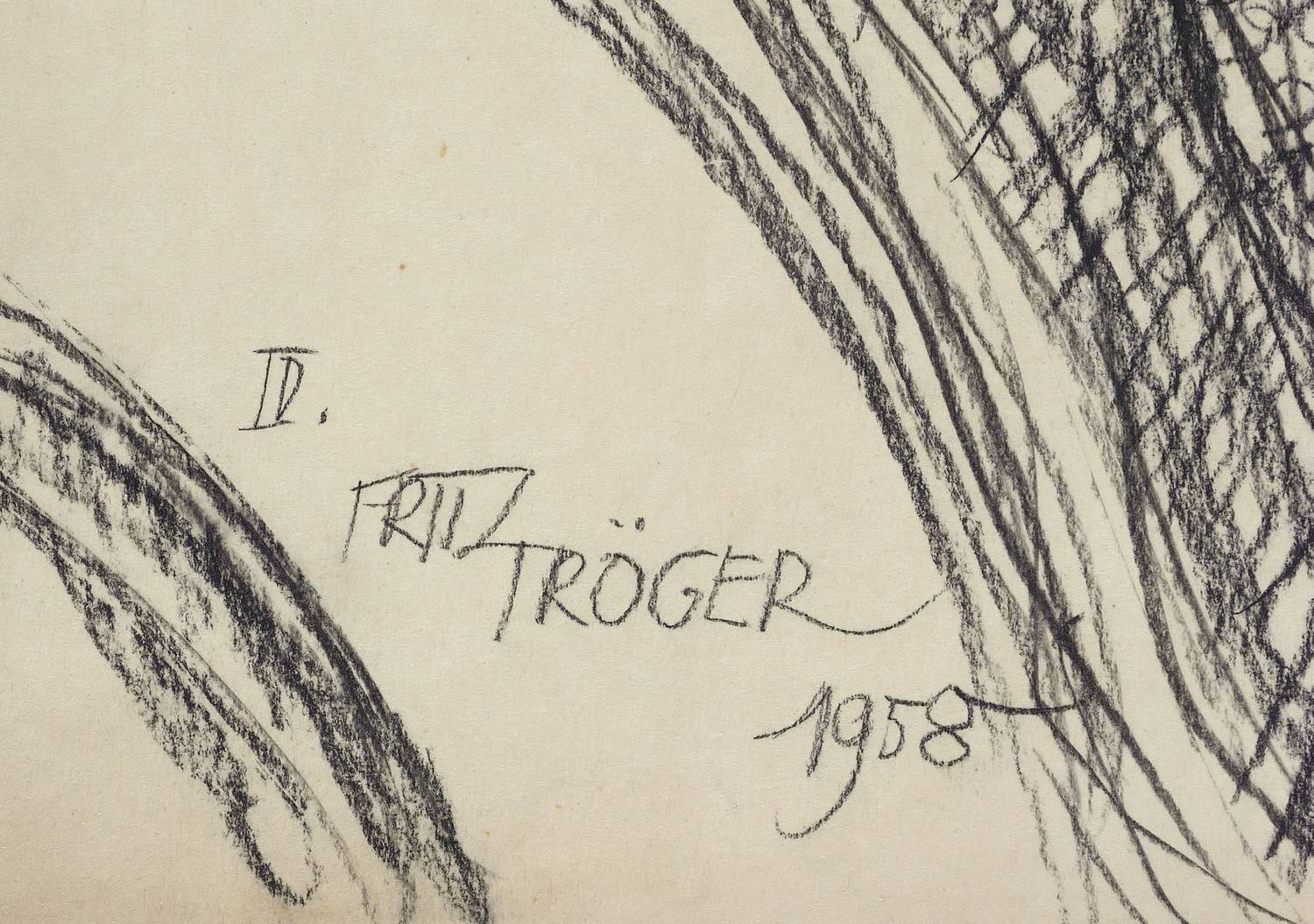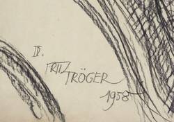 Links unten in Kreide signiert und datiert: ″IV. / FRITZ TRÖGER / 1958″. Verso in Bleistift Qualitätssigel: ″XXX″. – Tadellos. Sehr guter Zustand.