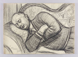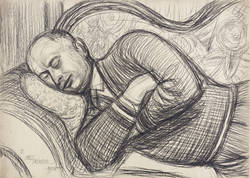 1958. Zeichnung / Kreide, in Schwarz, auf kräftigem hellgelbem Velinkarton. – Originale Künstlergrafik, von Fritz Tröger. – Unikat. – 50,3 x 70,1 cm (Darstellung / Blatt).