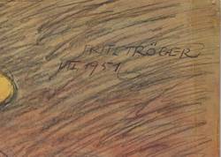 Fritz Tröger (1894 Dresden - 1978 Dresden). Deutscher Maler und Grafiker. Namhafter Vertreter der Neuen Sachlichkeit. 1914-18 Studium an der Kunstgewerbeschule in Dresden bei Paul Rößler und Margarete Junge. 1918-25 Studium an der Dresdner Akademie bei Max Feldbauer, Otto Gussmann, Otto Hettner und Georg Lührig. Ab 1925 freischaffender Maler in Dresden. Danach Studienreisen nach Italien, Frankreich, Spanien, Portugal, Österreich und nach Böhmen. 1928-30 Lehrer für Modezeichnen an der Kunstschule Guido Richter, 1929-35 Lehrer an der Heeres-Handwerker-Schule Dresden. 1929-33 Versuche mit keramischer Wandmalerei bei Teichert in Meißen. Gründungsmitglied der "Dresdner Sezession 1932". 1936 Rückzug in das Landatelier in Laske bei Kamenz. 1943-45 Ausstellungsverbot. 1947 Mitglied der Dresdner Künstlergemeinschaft "Das Ufer". 1950er und 1960er Jahre verstärkt Arbeit in landwirtschaftlichen und industriellen Betrieben sowie im Tagebau. 1954 Sonderausstellung im Albertinum in Dresden. 1955 und '61 Paris-Reisen. Tröger schuf Bildnisse, Landschaften und Industriedarstellungen in Öl, Pastell und Keramik.