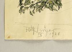 1928. Zeichnung / Federzeichnung, in schwarzer Tusche, aquarelliert, auf gelbem Velin. – Originale Künstlergrafik, von Fritz Tröger. – Unikat. – 31,8 x 47,6 cm (Darstellung / Blatt).