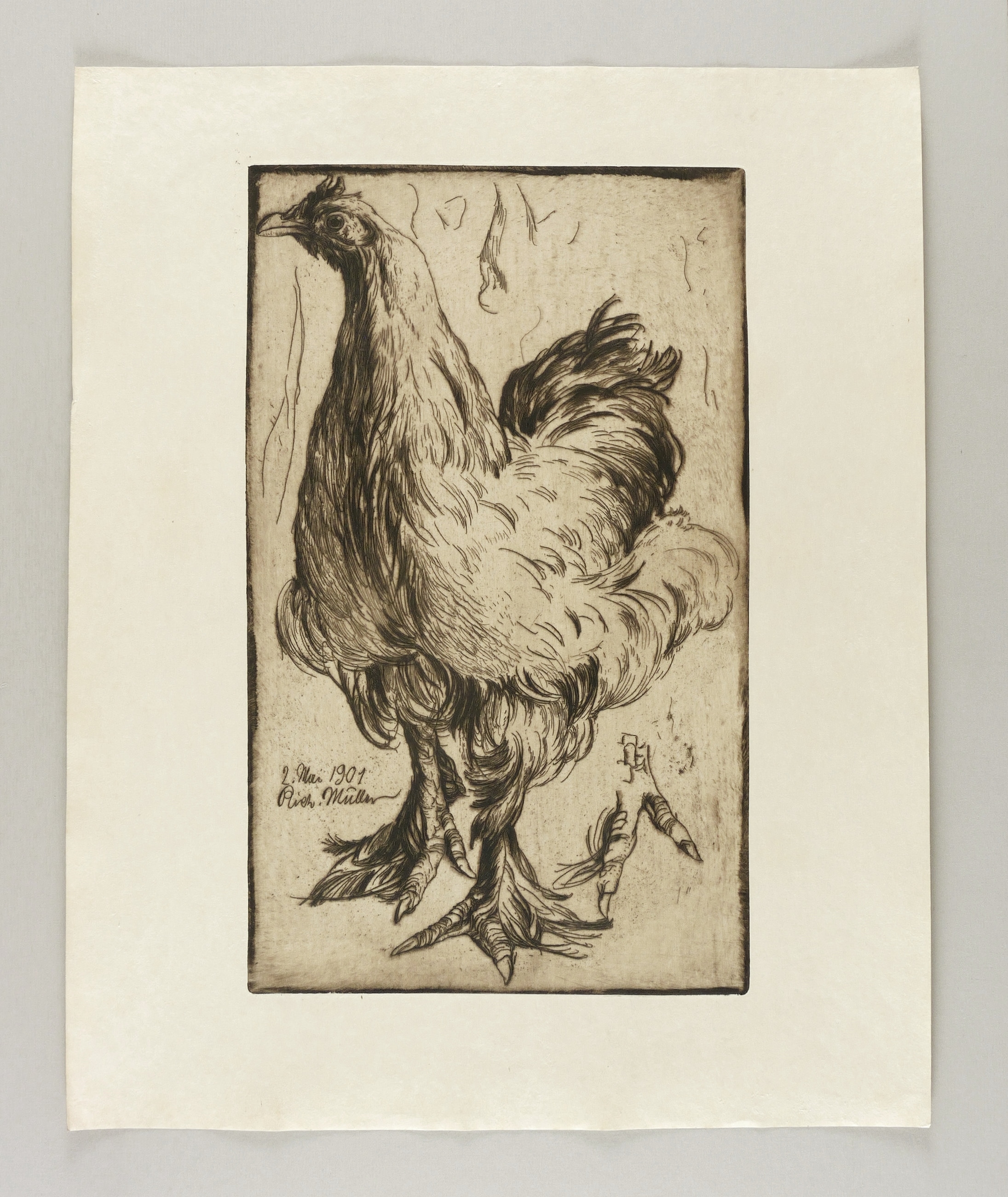 Günther 55. – Aus: Jahresmappe (Wien: Gesellschaft für vervielfältigende Kunst 1902). – Nicht handsigniert. In der Platte links unten signiert und datiert: ″2. Mai 1901 / Rich. Müller″. Ohne die typografische Beschriftung des Verlags im unteren Blattrand. – Das Blatt gilt als eine der bedeutendsten Tierdarstellungen Richard Müllers. – Probedruck vor der Auflage für die Jahresmappe der Gesellschaft für vervielfältigende Kunst in Wien. – Selten. – Papier mit minimalen, kaum merklichen Altersspuren. Der linke Blattrand oben mit feiner Knickspur. Insgesamt guter bis sehr guter Zustand.