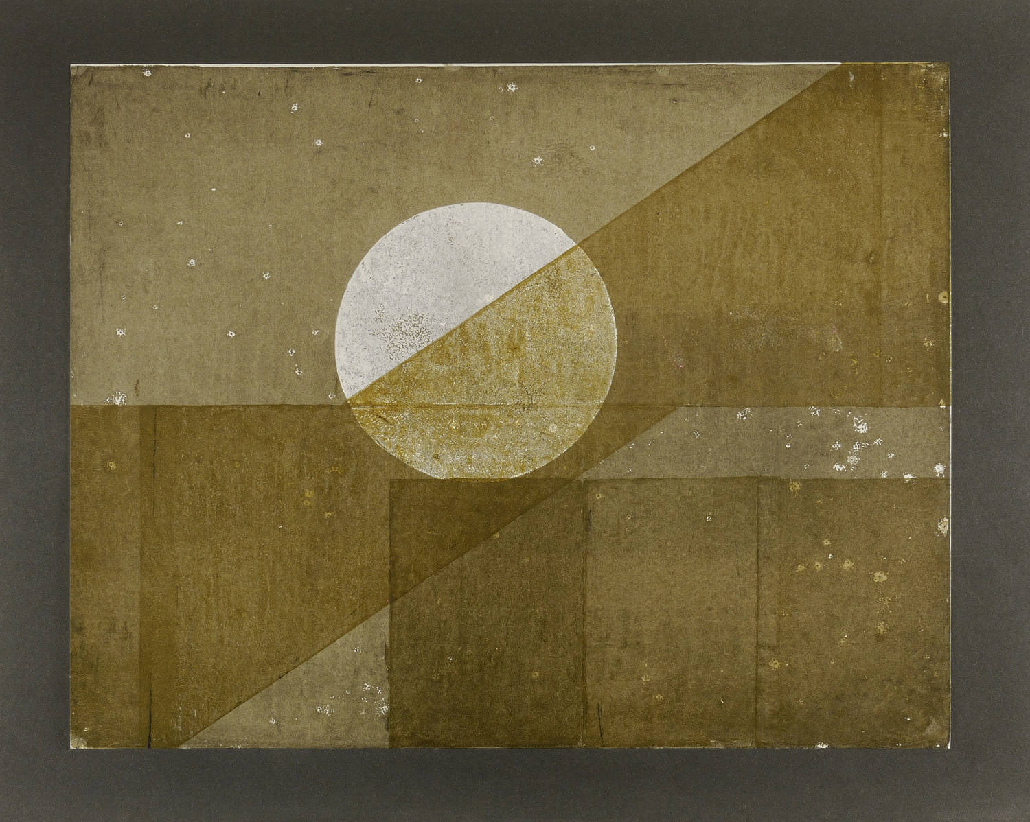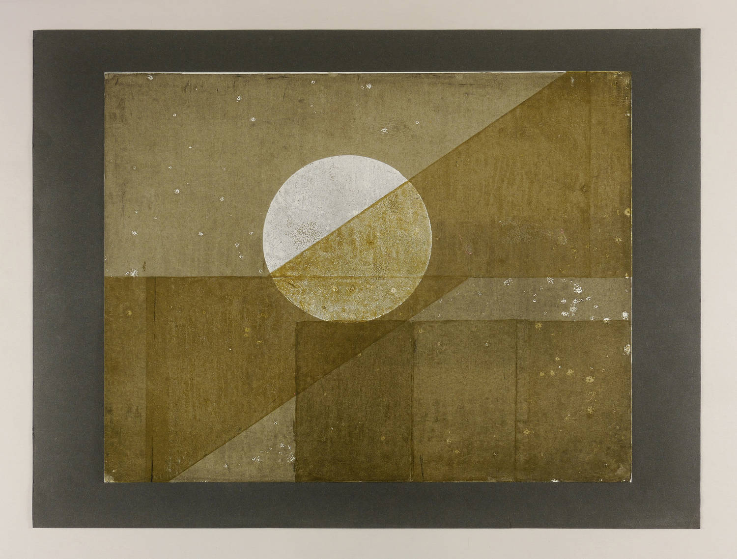 1989. Farblinolschnitt, in Sepia & Weiß, auf lichtgrau getöntem Bütten. – Originale Künstlergrafik, von Helmut Gebhardt. – Auflage Exemplar Nr. 1/20. – 49,5 x 63,3 cm (Darstellung / Blatt), 60 x 80 cm (Trägerkarton).