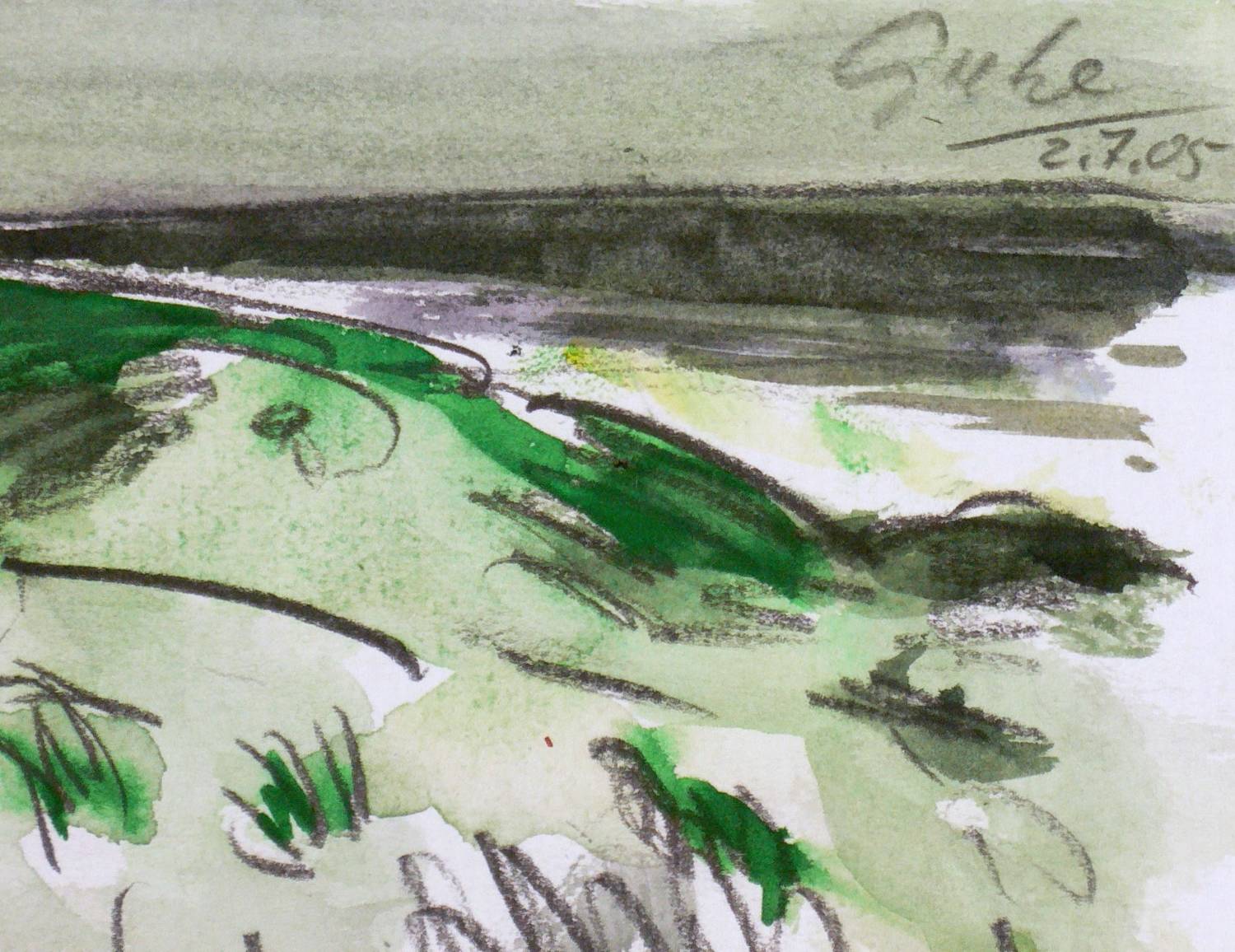 2005. Mischtechnik / Graphit & Aquarell, auf Velin. – Originale Künstlergrafik, von Hubertus Giebe. – Unikat. – 20,7 x 29,8 cm (Darstellung / Blatt).
