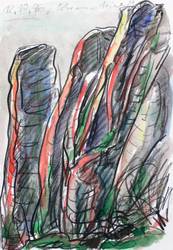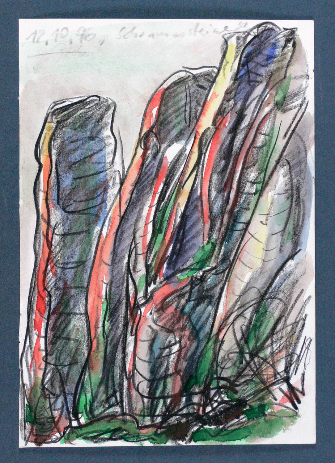 1996. Mischtechnik / Farbkreide & Aquarell, auf Papier. – Originale Künstlergrafik, von Hubertus Giebe. – Unikat. – 29,8 x 20,7 cm (Darstellung / Blatt).