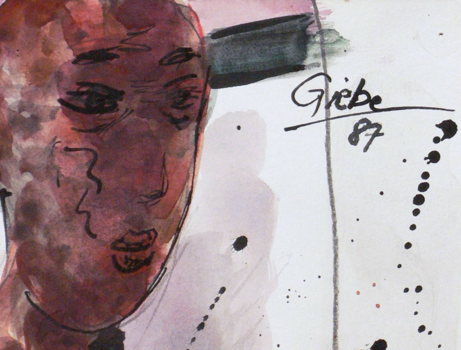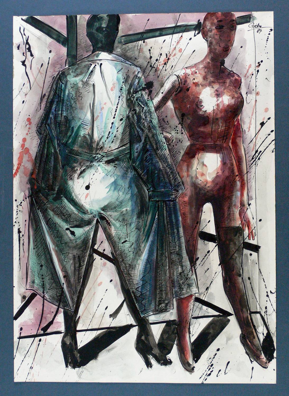1987. Mischtechnik / Federzeichnung & Aquarell, auf Velin. – Originale Künstlergrafik, von Hubertus Giebe. – Unikat. – 59,5 x 42,0 cm (Darstellung / Blatt).