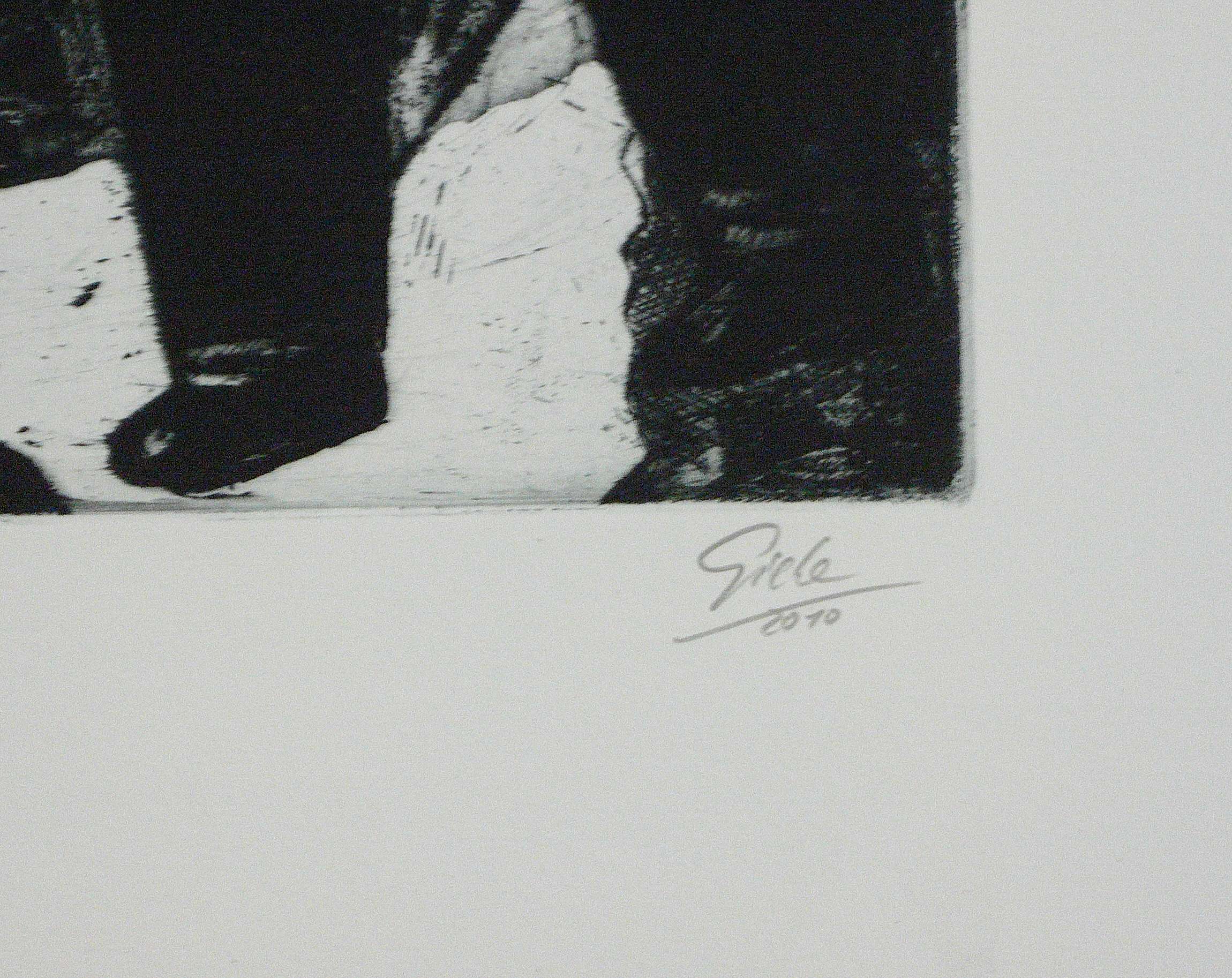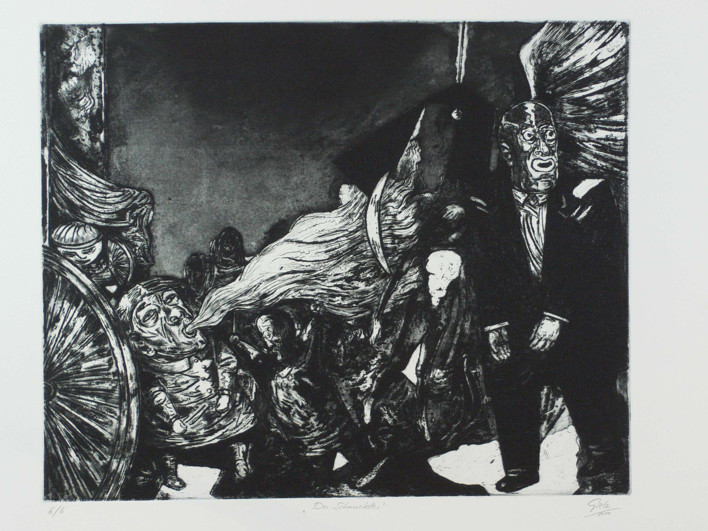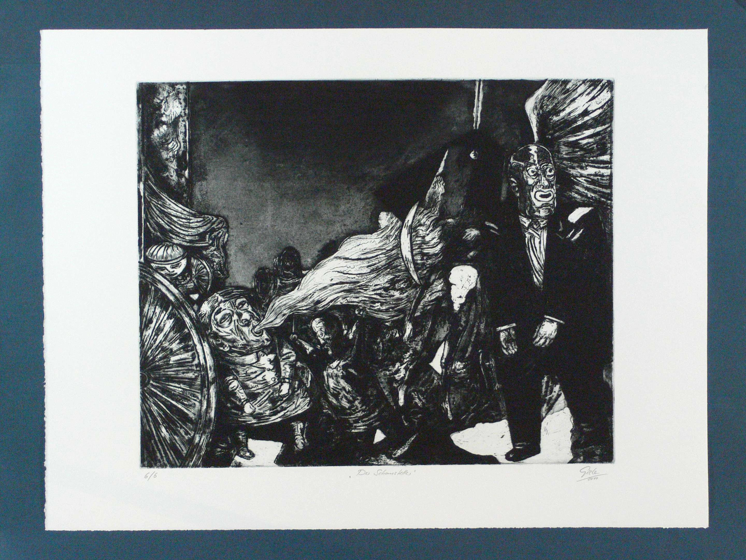 2010. Radierung / Aquatinta & Kaltnadel, in Schwarz, auf schwerem hellchamois Velin. – Originale Künstlergrafik, von Hubertus Giebe. – Auflage Exemplar Nr. 6/6. – 49,5 x 61,0 cm (Darstellung / Platte), 63,5 x 85,5 cm (Blatt).