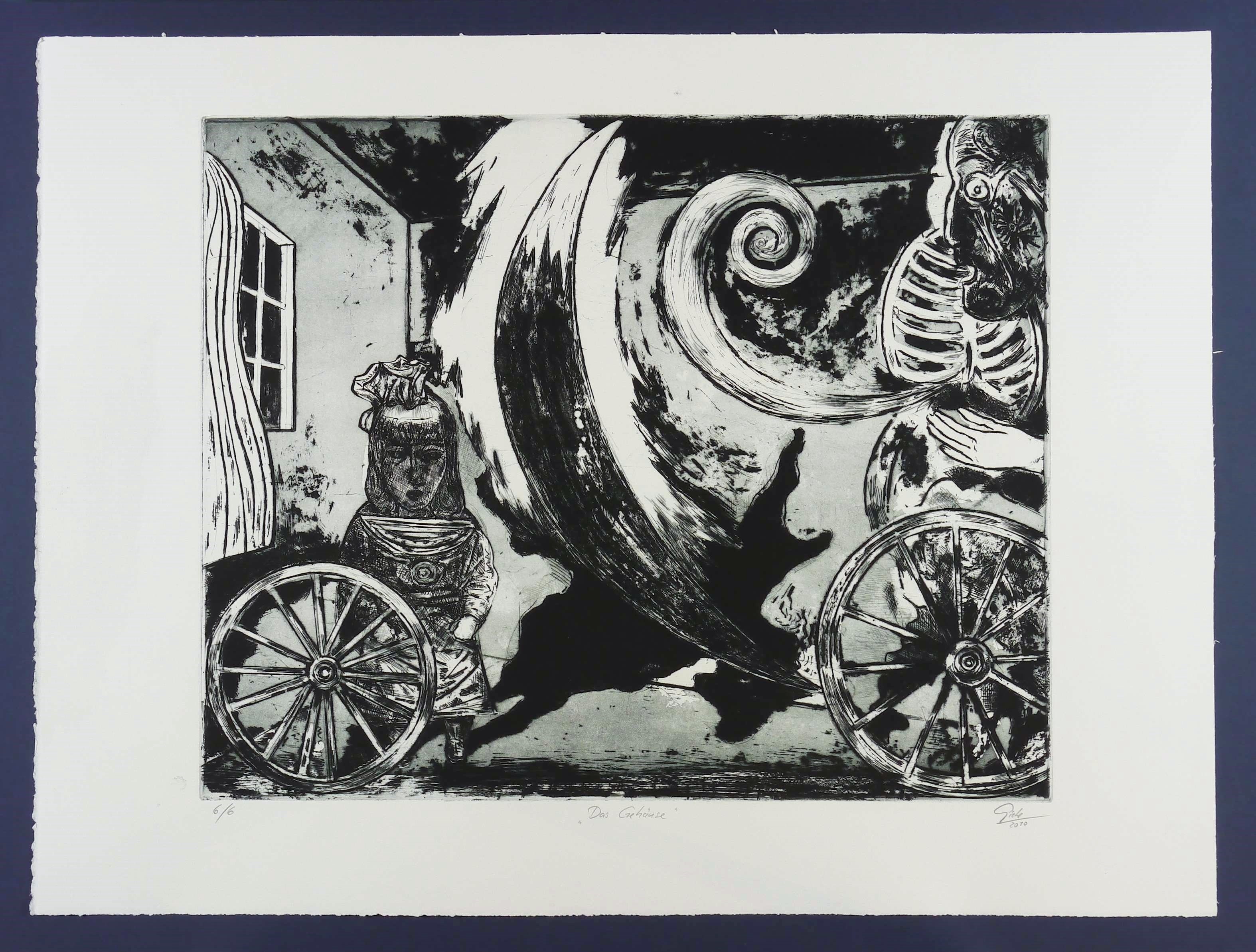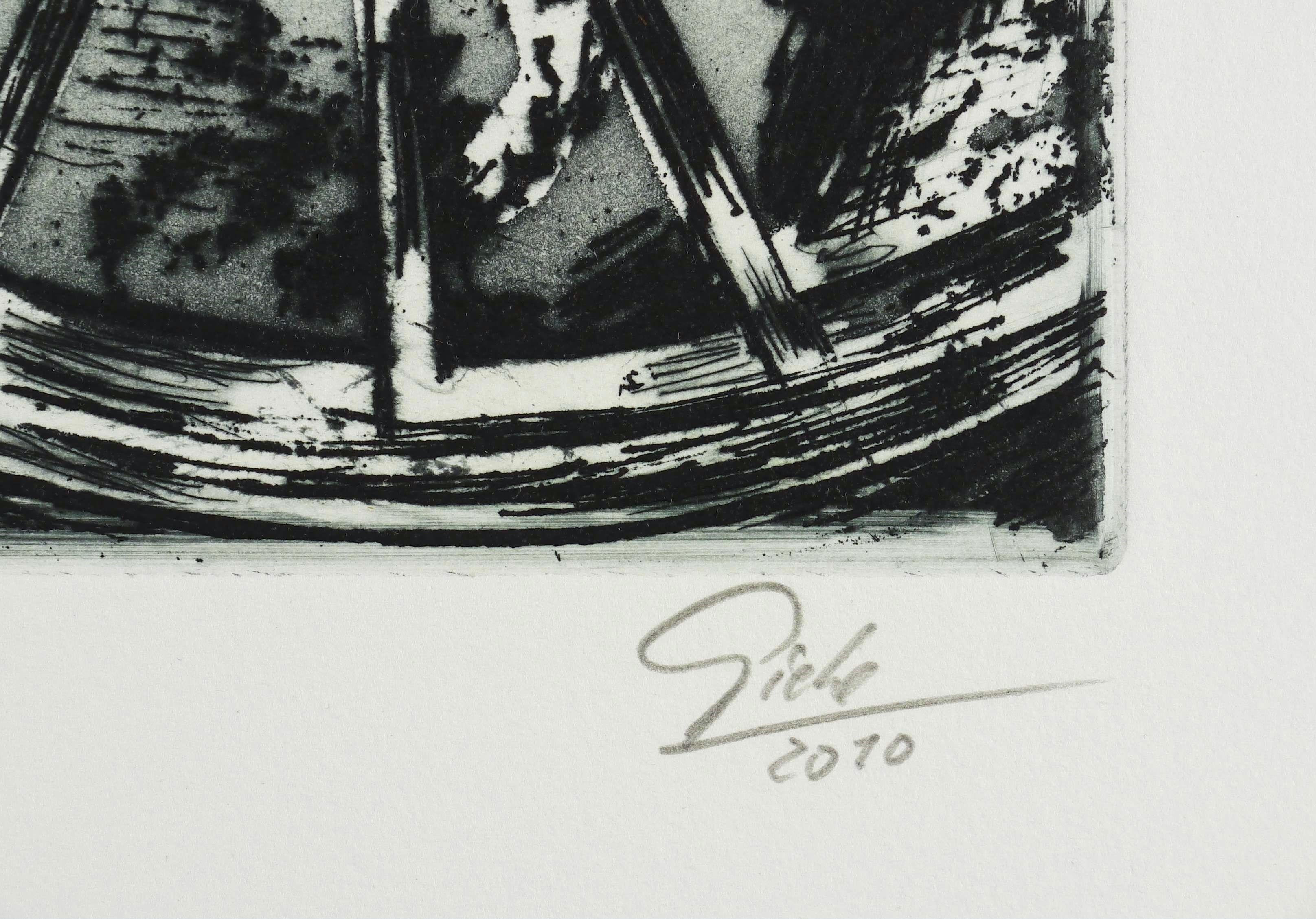2010. Radierung / Strichätzung & Aquatinta, in Schwarz, auf schwerem hellchamois Bütten. – Originale Künstlergrafik, von Hubertus Giebe. – Auflage Exemplar Nr. 6/6. – 50,0 x 61,5 cm (Darstellung / Platte), 64 x 86 cm (Blatt).