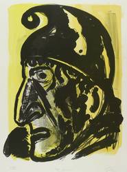Hubertus Giebe (*1953 Dohna / Sachsen, lebt und arbeitet in Dresden). Deutscher Maler und Grafiker, bedeutender Vertreter des Expressiven Realismus. 1969-72 Abendstudium der Malerei und Grafik an der Hochschule für Bildende Künste. 1974-76 Studium der Malerei und Grafik an der HfBK Dresden. 1976 Exmatrikulation auf eigenen Wunsch. 1978 externes Diplom an der Hochschule für Grafik und Buchkunst Leipzig. Meisterschüler von Bernhard Heisig. 1982-86 Leitung des Grundlagenstudiums für Malerei und Grafik an der HfBK Dresden. 1987 Berufung zum Dozenten für Malerei und Grafik an der HfBK Dresden. 2004 Vertretungsprofessur für Malerei an der Universität Dortmund.