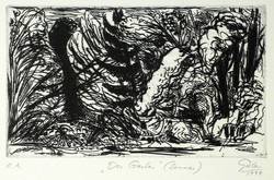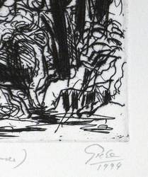 1994. Radierung / Strichätzung & Aquatinta, in Schwarz, auf hellem Büttenpapier. – Originale Künstlergrafik, von Hubertus Giebe. – Künstlerexemplar (e.a.). – 15,1 x 25,7 cm (Darstellung / Platte), 54 x 39,5 cm (Blatt).