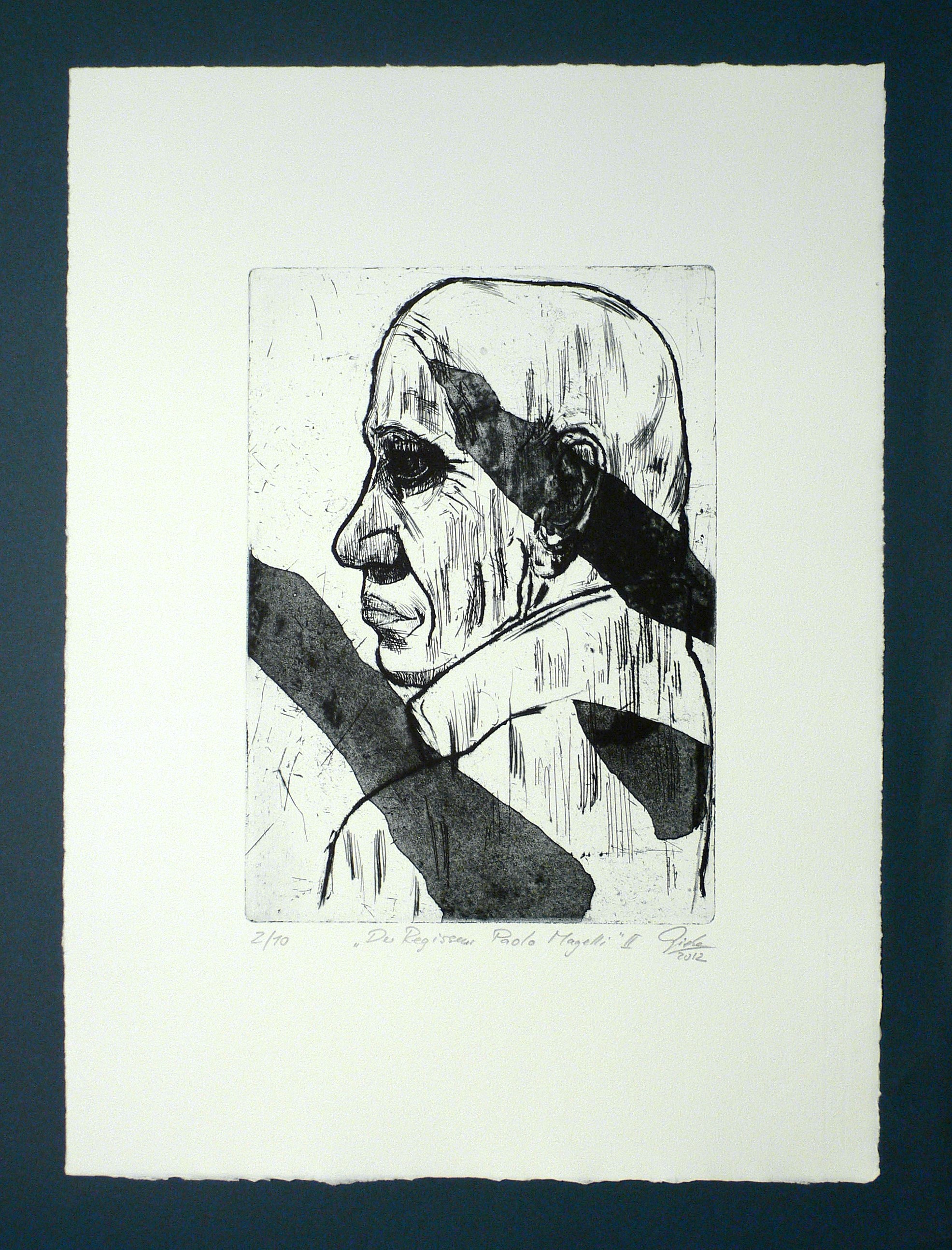 2012. Radierung / Strichätzung & Aquatinta, in Schwarz, auf Büttenpapier. – Originale Künstlergrafik, von Hubertus Giebe. – Auflage Exemplar Nr. 2/10. – 31,6 x 22,6 cm (Darstellung / Platte), 54 x 39 cm (Blatt).