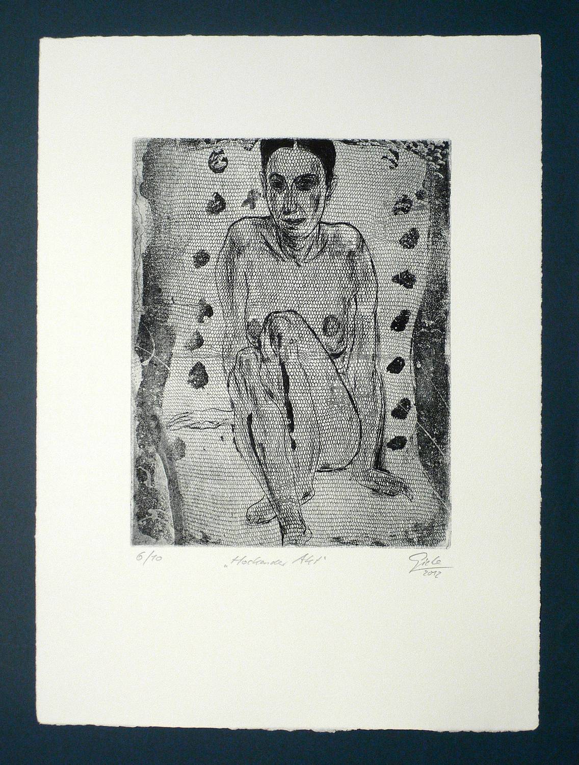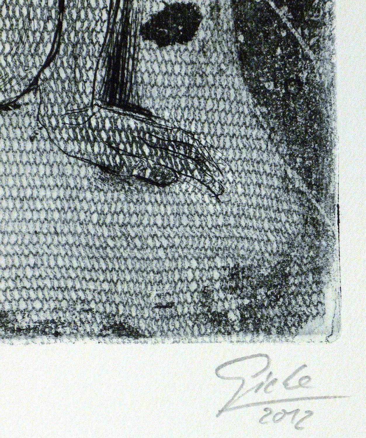 2012. Radierung / Vernis mou, Strichätzung & Aquatinta, in Schwarz, auf hellchamois Büttenpapier. – Originale Künstlergrafik, von Hubertus Giebe. – Auflage Exemplar Nr. 6/10. – 31,8 x 24,8 cm (Darstellung / Platte), 54 x 39 cm (Blatt).