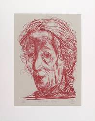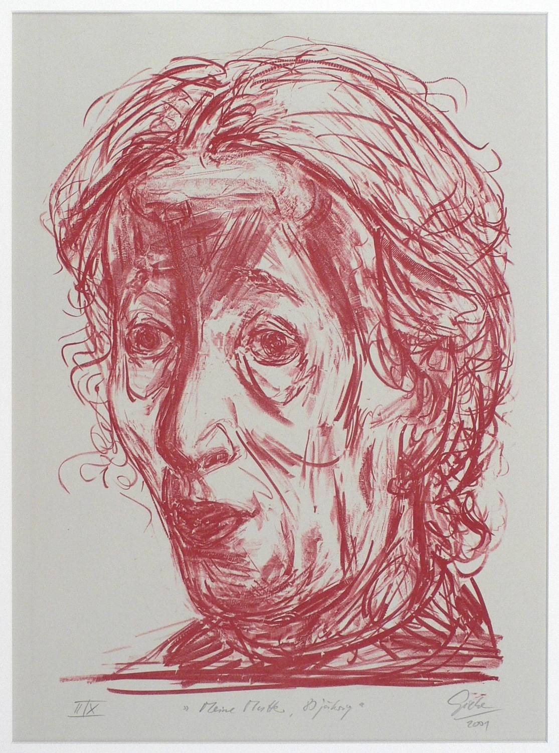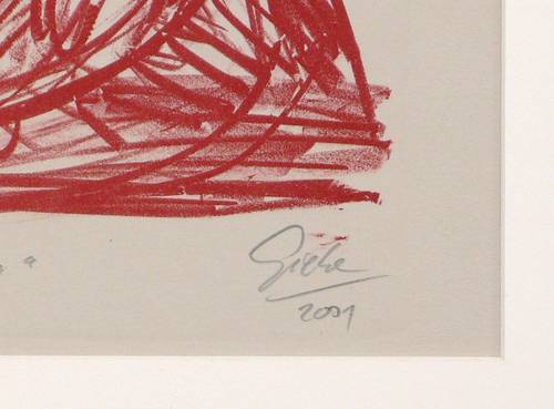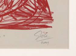 2001. Lithografie / Kreidelithografie, in Rotbraun, auf hellgrau getöntem Bütten. – Originale Künstlergrafik, von Hubertus Giebe. – Auflage Exemplar Nr. 2/10. – 47,5 x 33,5 cm (Darstellung), 53,5 x 40,0 cm (-), 70 x 55 cm (Passepartout).
