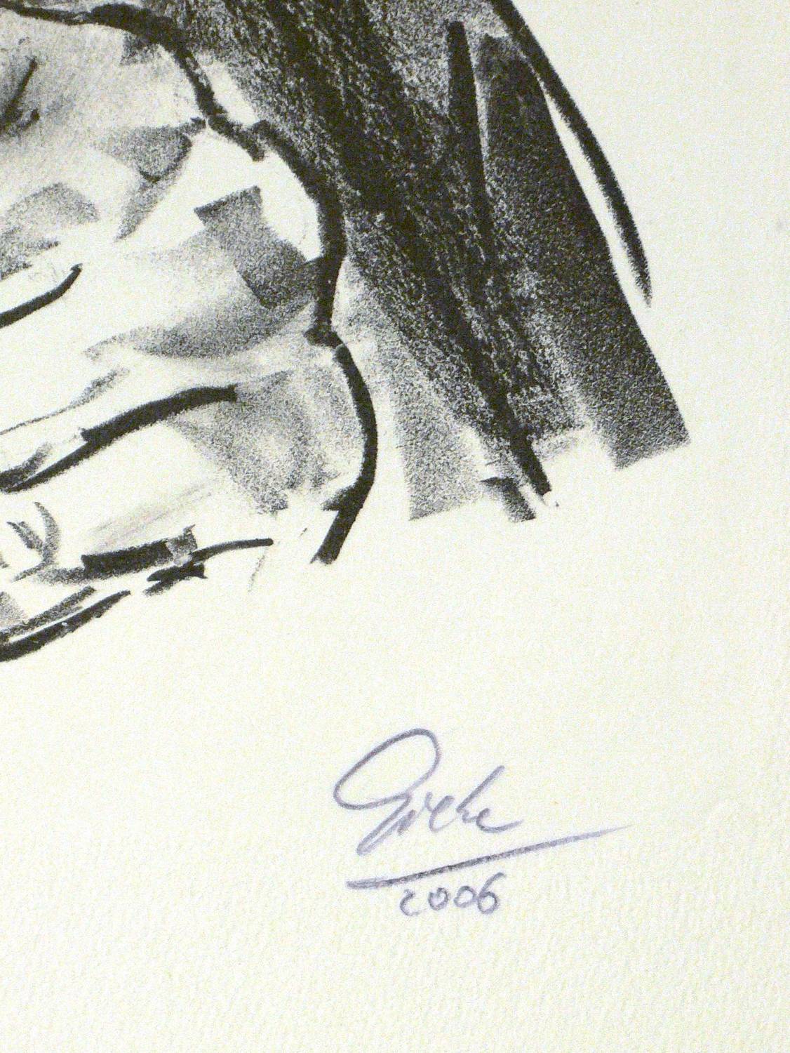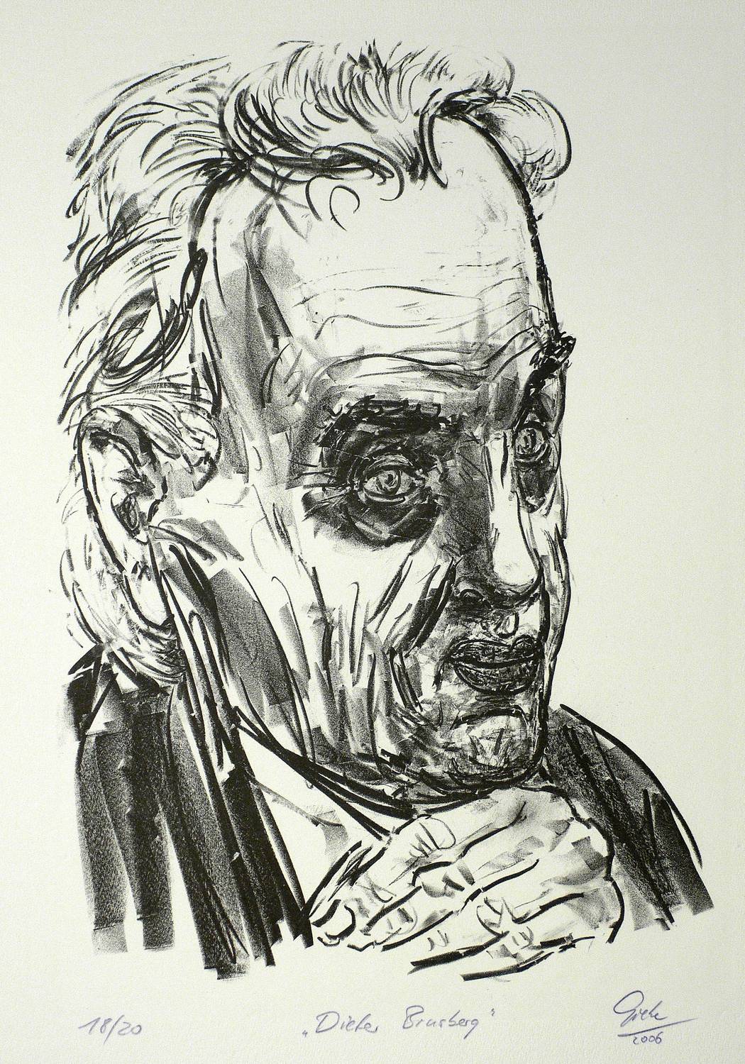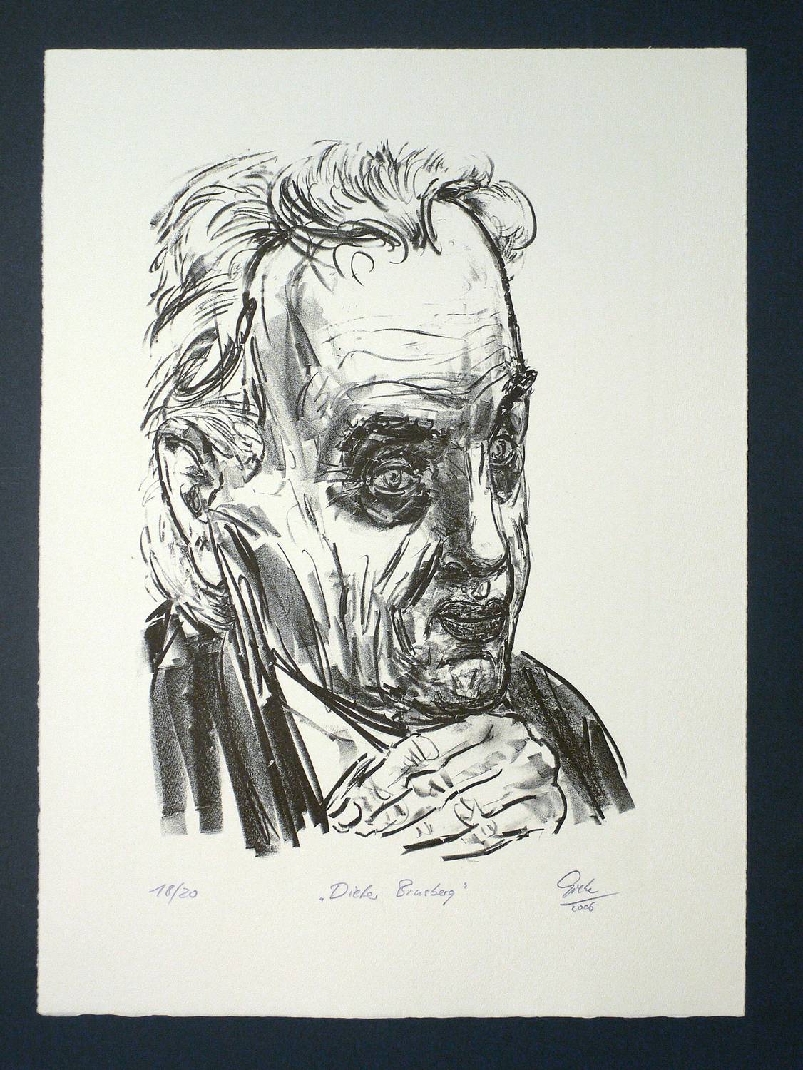 2006. Lithografie / Kreidelithografie, in Schwarz, auf Büttenpapier. – Von Hubertus Giebe. – Auflage Exemplar Nr. 18/20. – 40,0 x 27,5 cm (Darstellung), 54 x 39,5 cm (Stein).