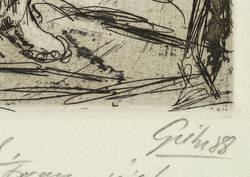 1988. Radierung / Strichätzung, mit Plattenton, in Schwarz, auf hellchamois Velin. – Originale Künstlergrafik, von Hubertus Giebe. – Künstlerexemplar (e.a.). – 21,0 x 14,5 cm (Darstellung / Platte), 30 x 20 cm (Blatt).