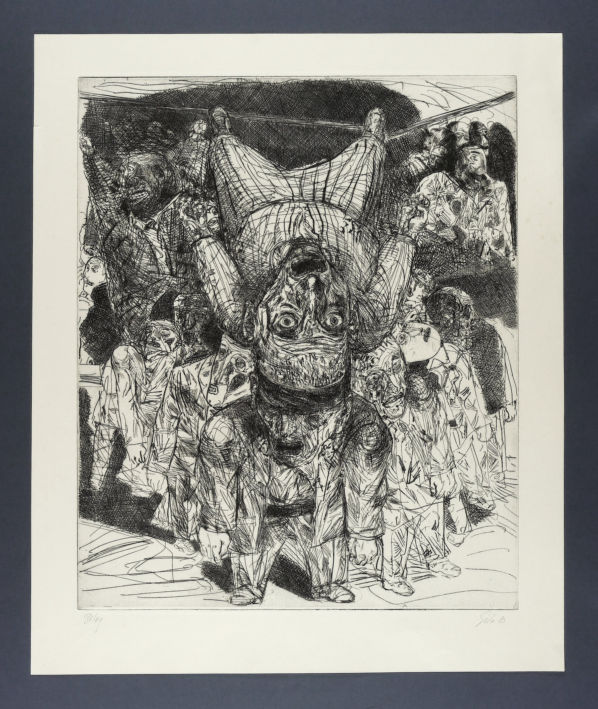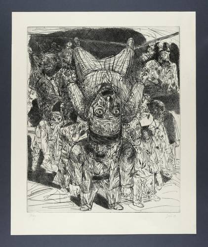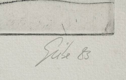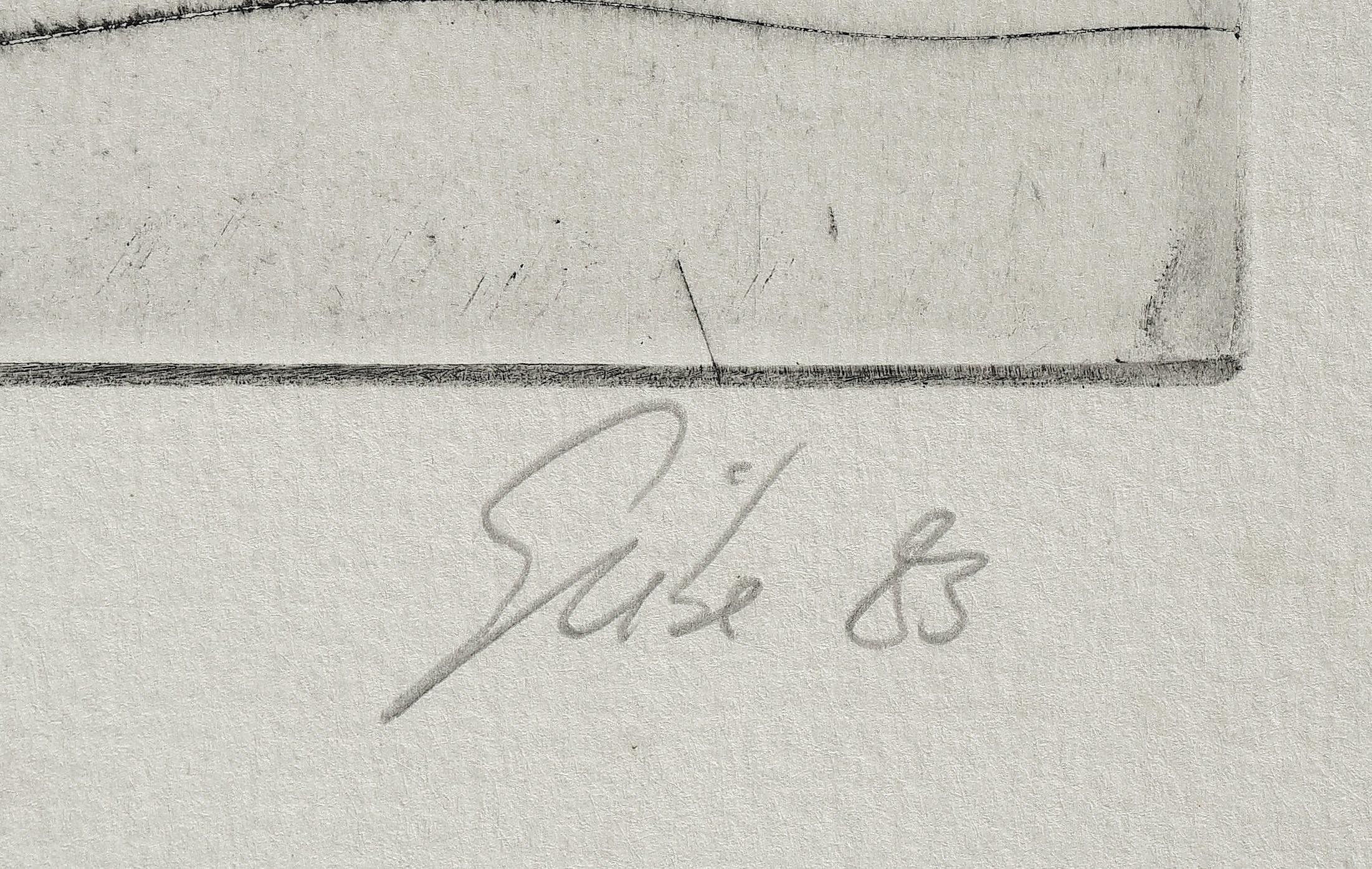 1983. Radierung / Kaltnadel, in Schwarz, auf Torchon-Papier. – Originale Künstlergrafik, von Hubertus Giebe. – Künstlerexemplar (e.a.). – 59,5 x 49,2 cm (Darstellung / Platte), 71 x 60 cm (Blatt).