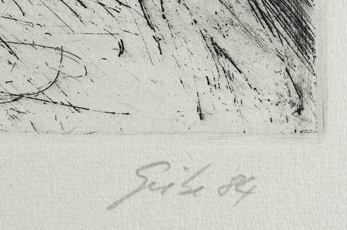 1984. Radierung / Kaltnadel, in Schwarz, auf Hahnemühle-Bütten. – Originale Künstlergrafik, von Hubertus Giebe. – Auflage Exemplar Nr. 8/20. – 49,1 x 58,0 cm (Darstellung / Platte), 65 x 82 cm (Blatt).