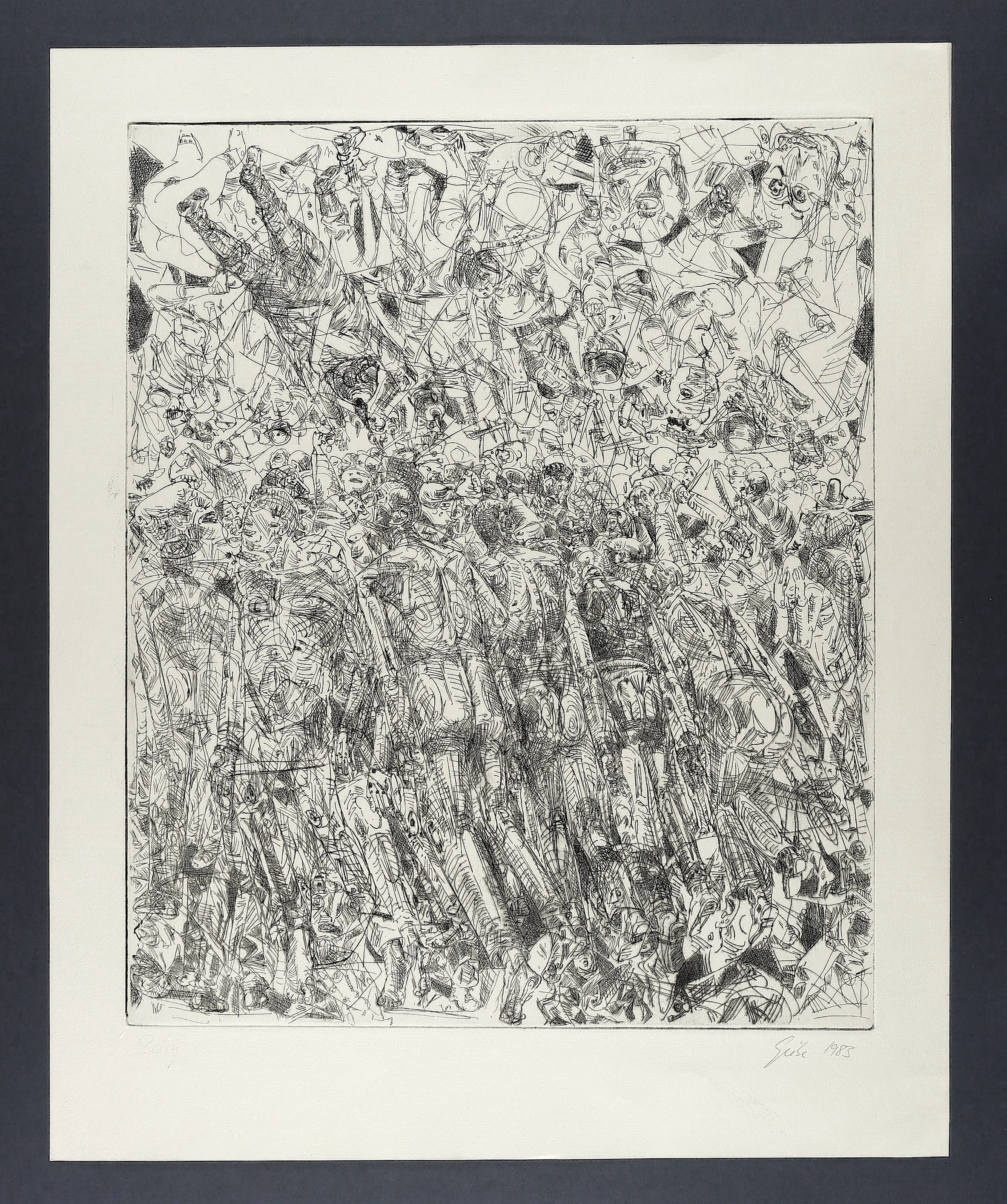 1983. Radierung / Kaltnadel, in Schwarz, auf Torchon-Papier. – Originale Künstlergrafik, von Hubertus Giebe. – Künstlerexemplar (e.a.). – 59,5 x 49,0 cm (Darstellung / Platte), 73 x 59 cm (Blatt).