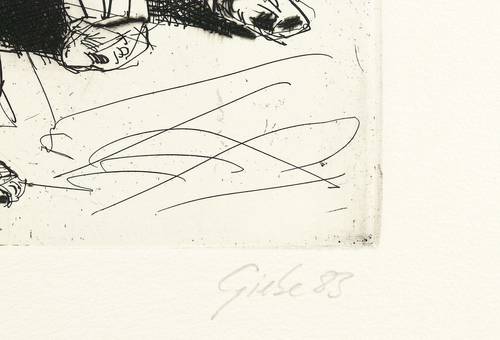 1983. Radierung / Kaltnadel, in Schwarz, auf hellchamois Hahnemühle. – Originale Künstlergrafik, von Hubertus Giebe. – Auflage Exemplar Nr. 30/120. – 31,0 x 24,5 cm (Darstellung / Platte), 53,5 x 39,5 cm (Blatt).