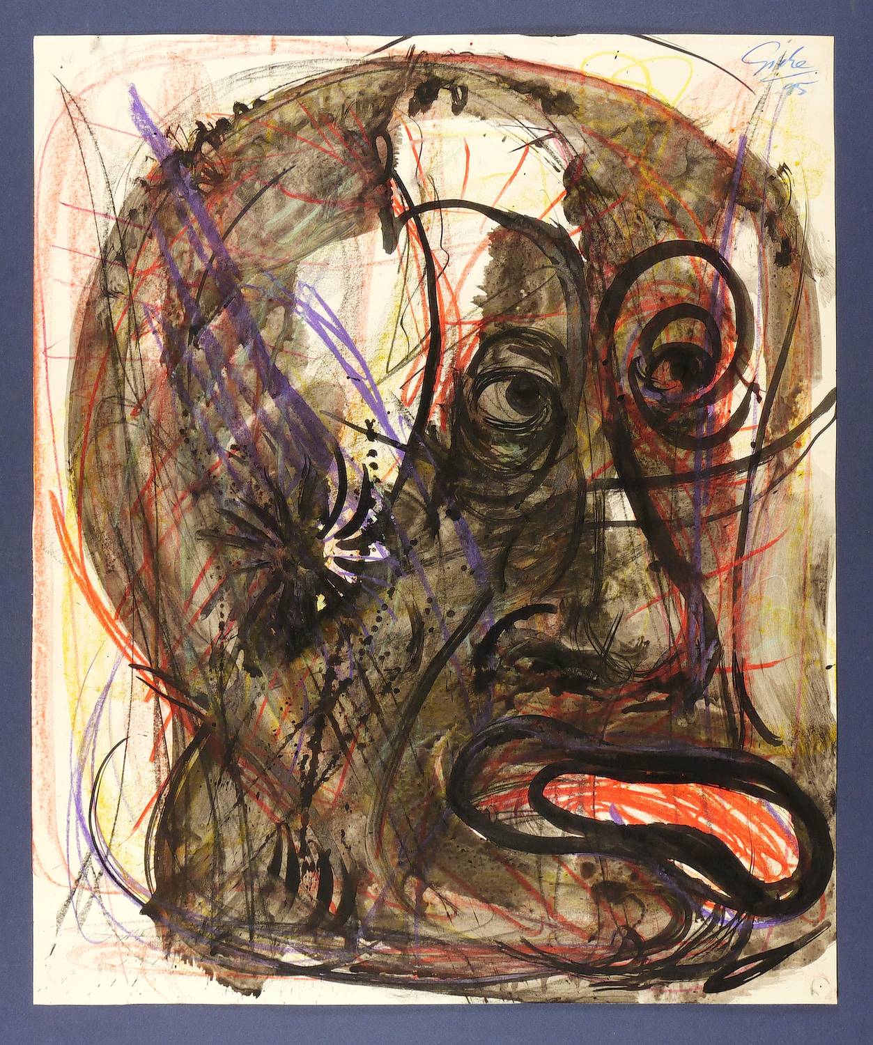 1995. Mischtechnik / Tusche & Farbkreide, auf Papier. – Originale Künstlergrafik, von Hubertus Giebe. – Unikat. – 60,0 x 49,5 cm (Darstellung / Blatt).