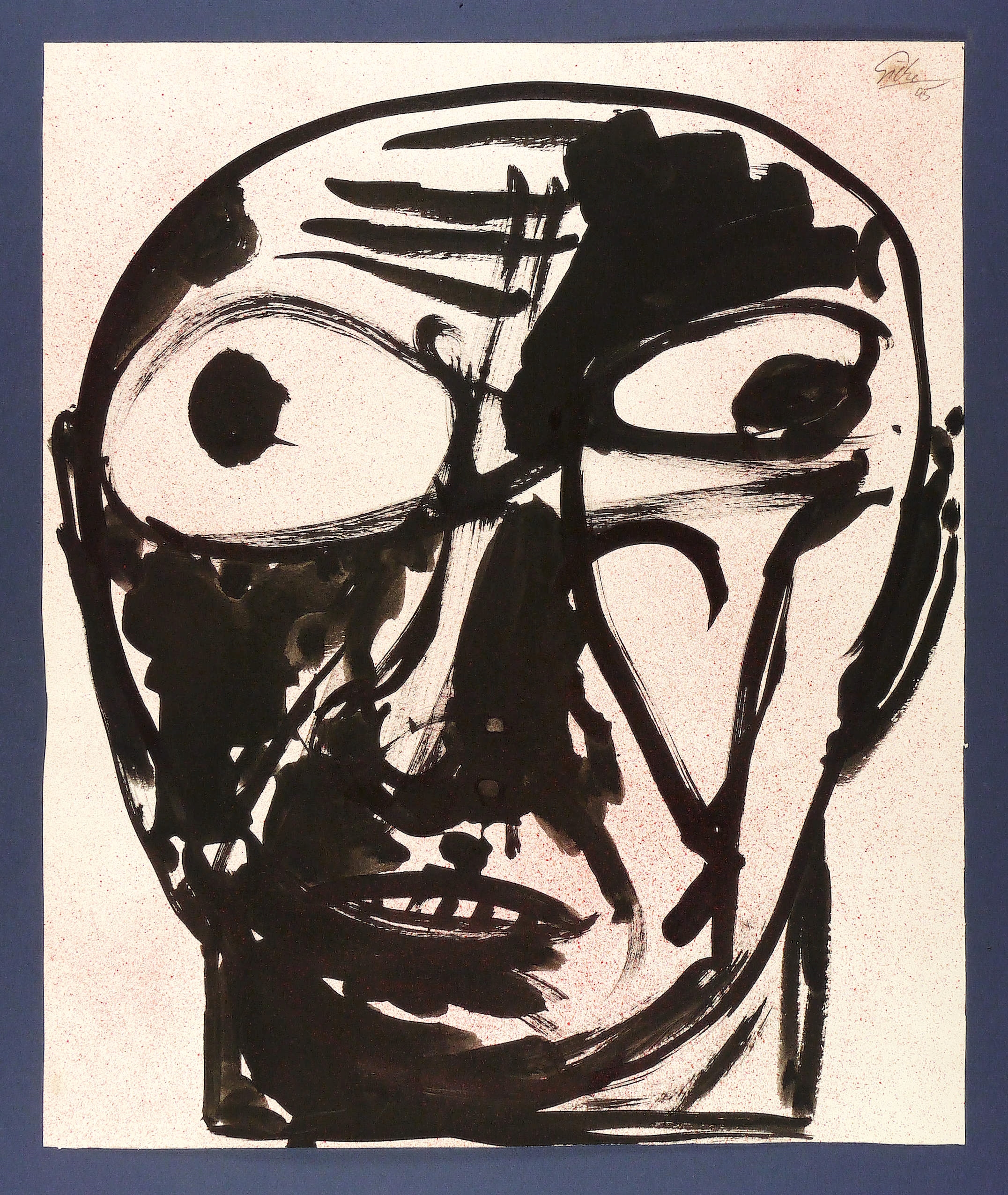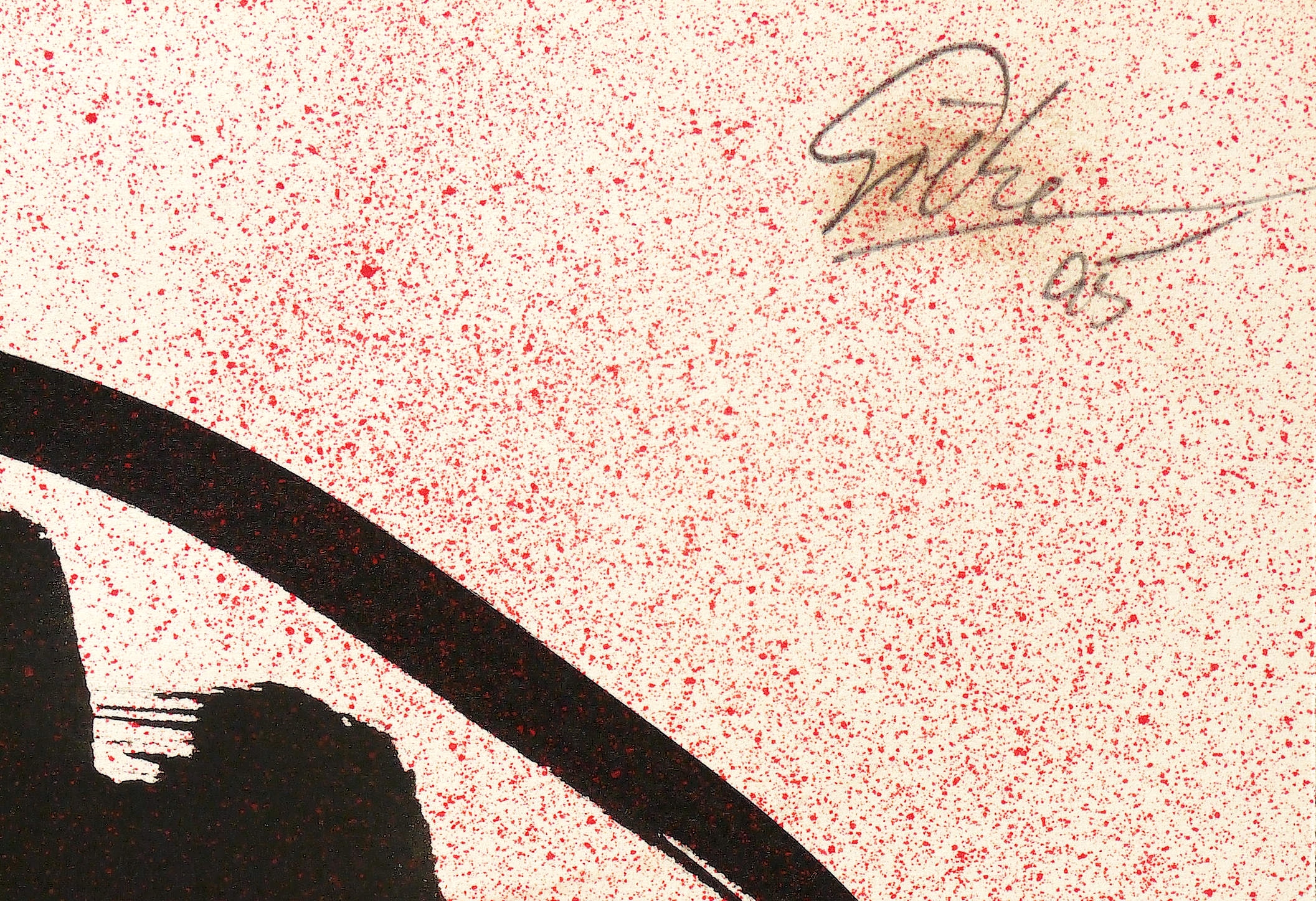 1995. Zeichnung / Pinselzeichnung, in schwarzer Tusche, in Rot flächig überspritzt, auf Velin. – Originale Künstlergrafik, von Hubertus Giebe. – Unikat. – 60,0 x 50,0 cm (Darstellung / Blatt).