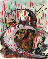 1998. Mischtechnik / Aquarell & Tusche, auf Büttenpapier. – Originale Künstlergrafik, von Hubertus Giebe. – Unikat. – 60,0 x 50,0 cm (Darstellung / Blatt).