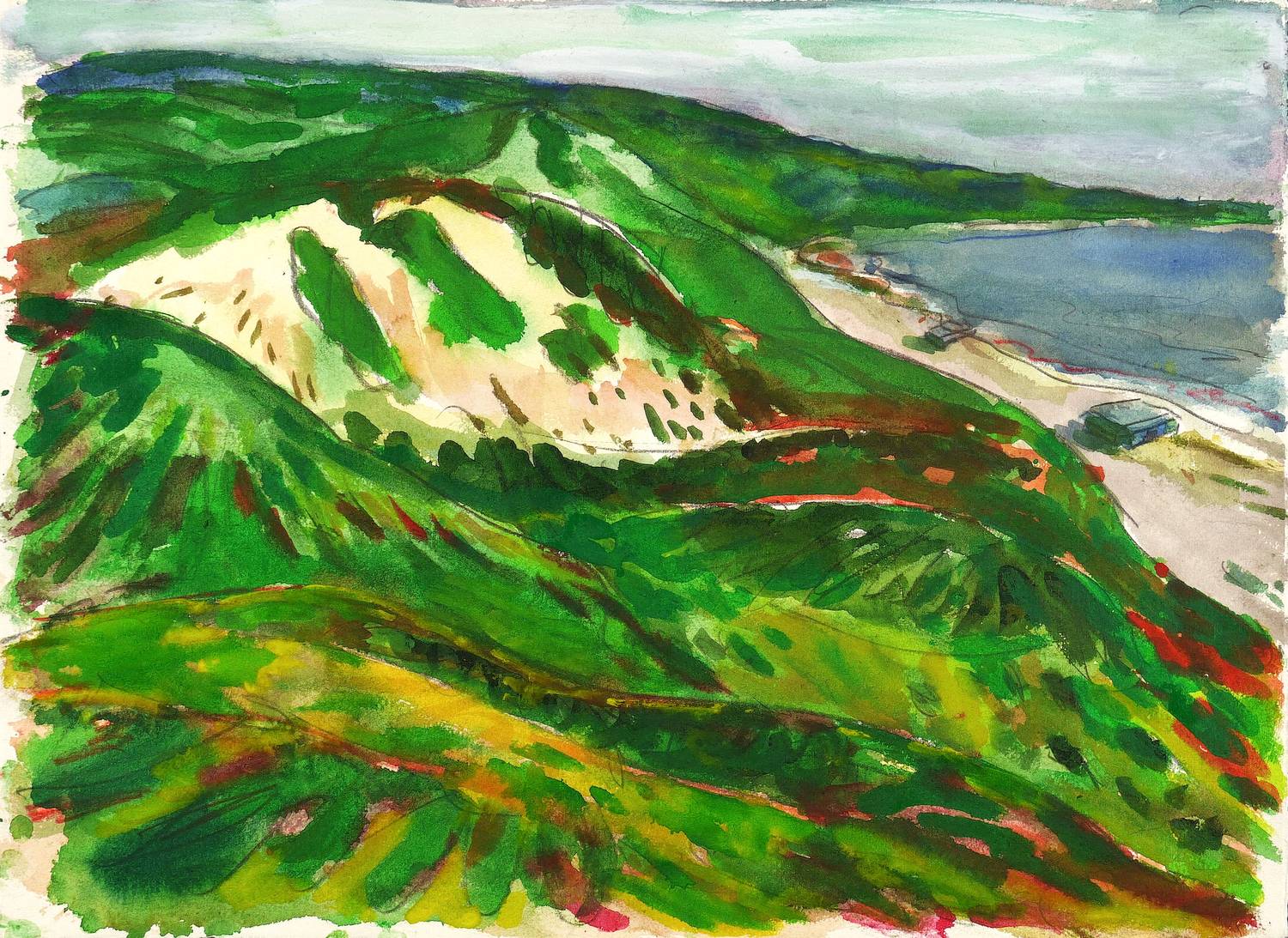 Um 1995. Aquarell, über Bleistift, auf Büttenpapier. – Originale Künstlergrafik, von Hubertus Giebe. – Unikat. – 40,0 x 54,0 cm (Darstellung / Blatt).