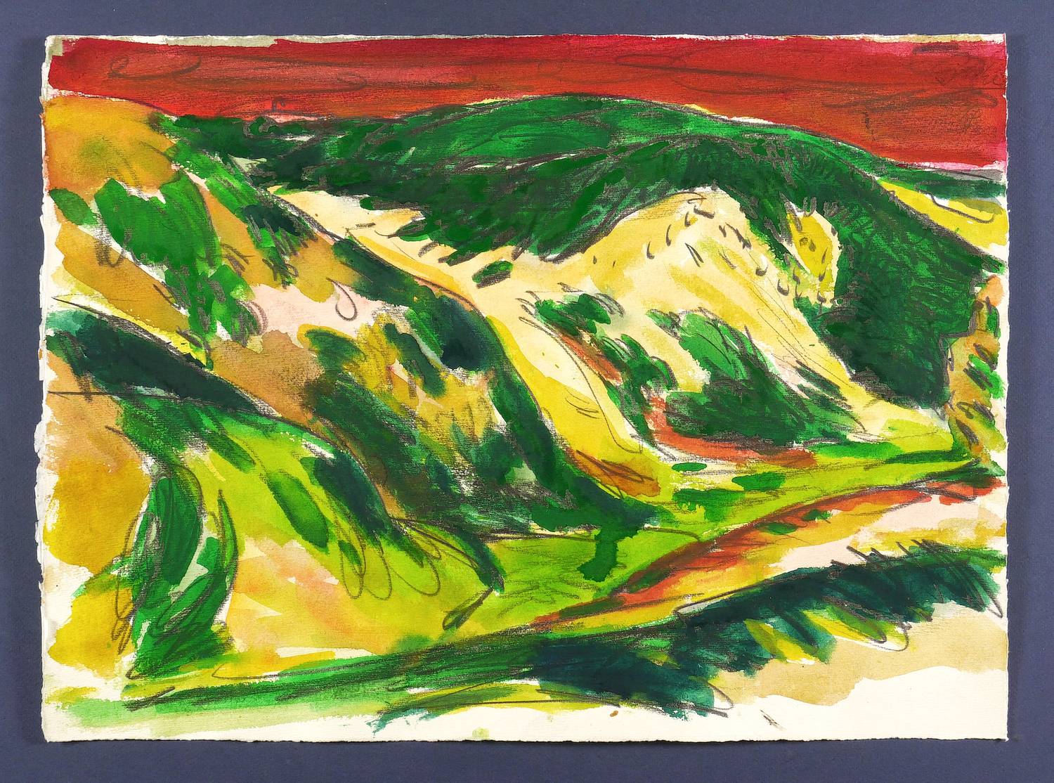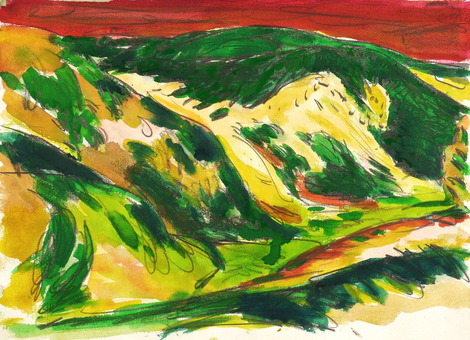 1994. Aquarell, über Bleistift, auf Büttenpapier. – Originale Künstlergrafik, von Hubertus Giebe. – Unikat. – 39,5 x 53,5 cm (Darstellung / Blatt).