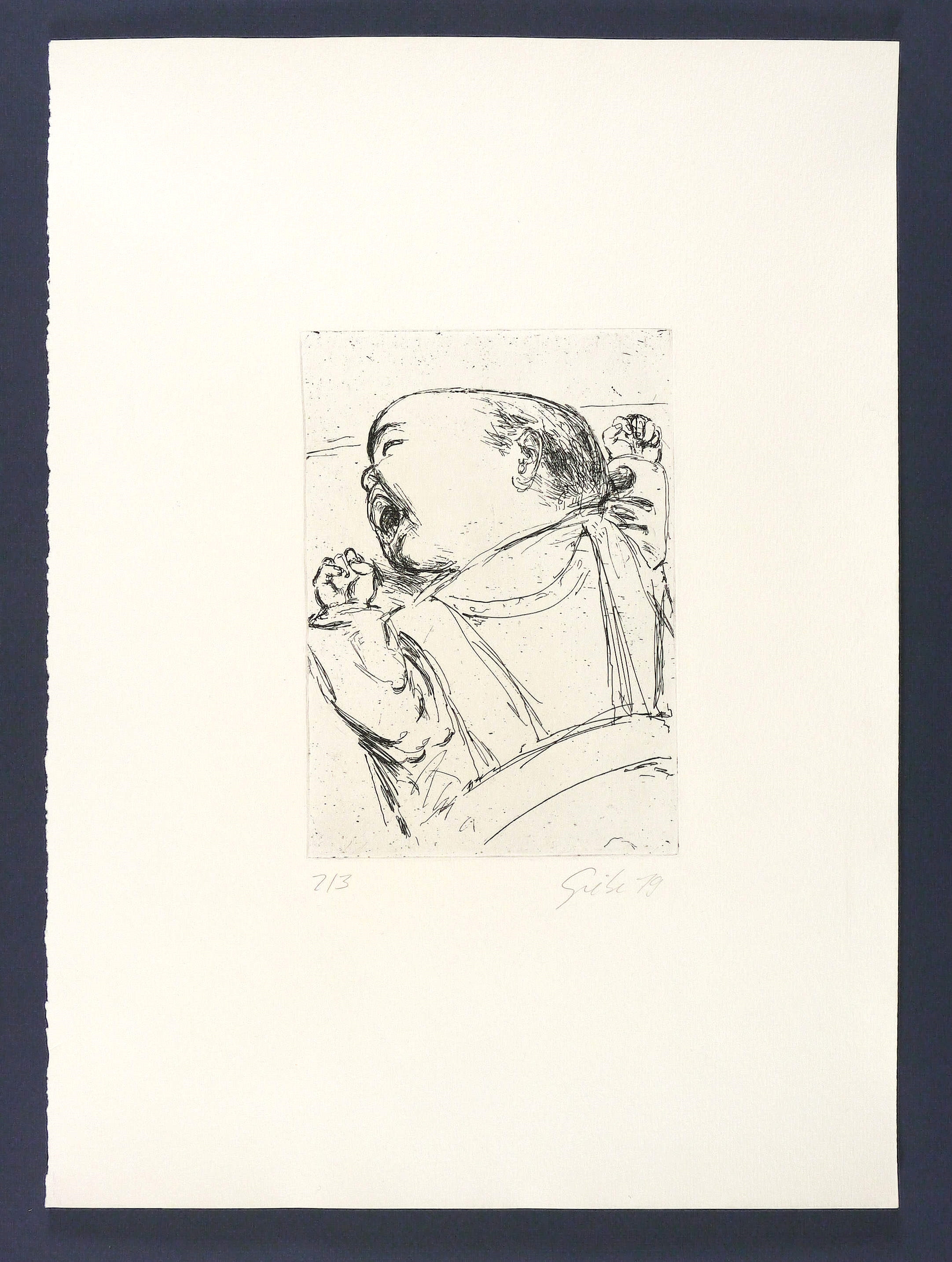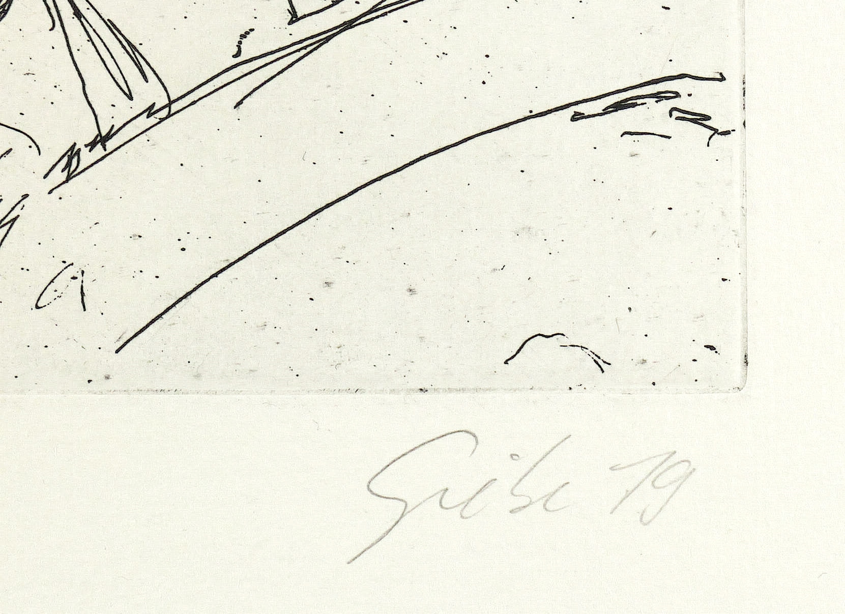 1979. Radierung / Strichätzung, in Schwarz, auf Weißenborn-Bütten. – Originale Künstlergrafik, von Hubertus Giebe. – Auflage Exemplar Nr. 2/3. – 19,9 x 14,0 cm (Darstellung / Platte), 44 x 32 cm (Blatt).