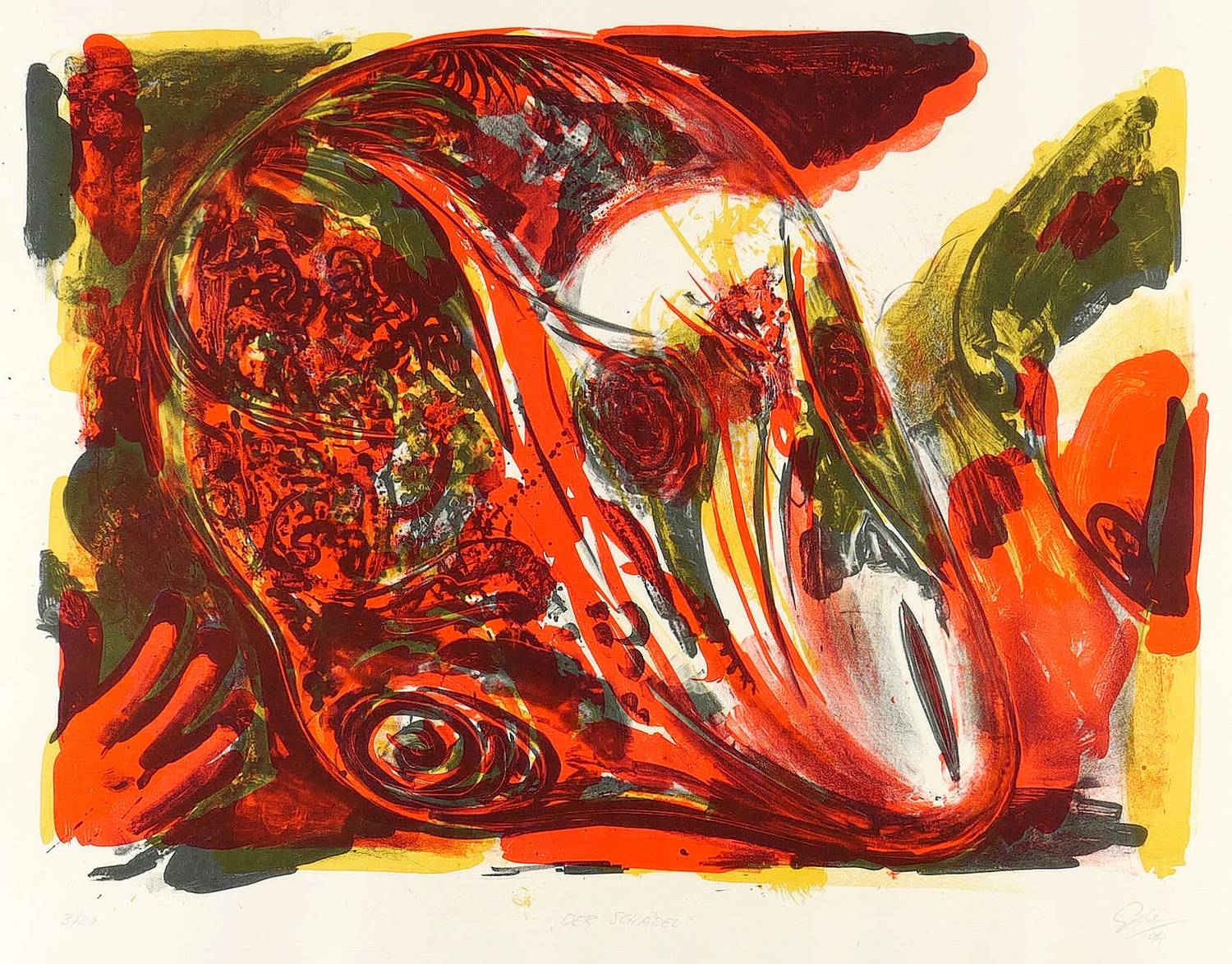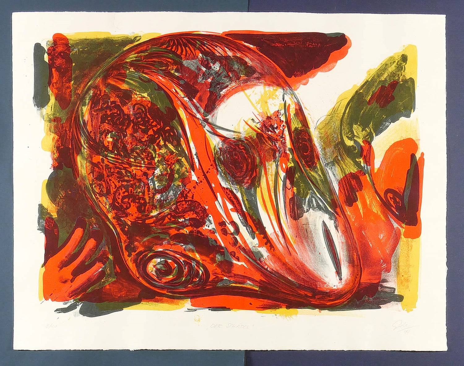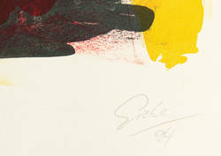 1994. Farblithografie / Kreidelithografie, in 4 Farben, auf schwerem hellchamois Bütten. – Originale Künstlergrafik, von Hubertus Giebe. – Auflage Exemplar Nr. 3/20. – 57,0 x 76,0 cm (Darstellung / Stein), 67 x 85 cm (Blatt).