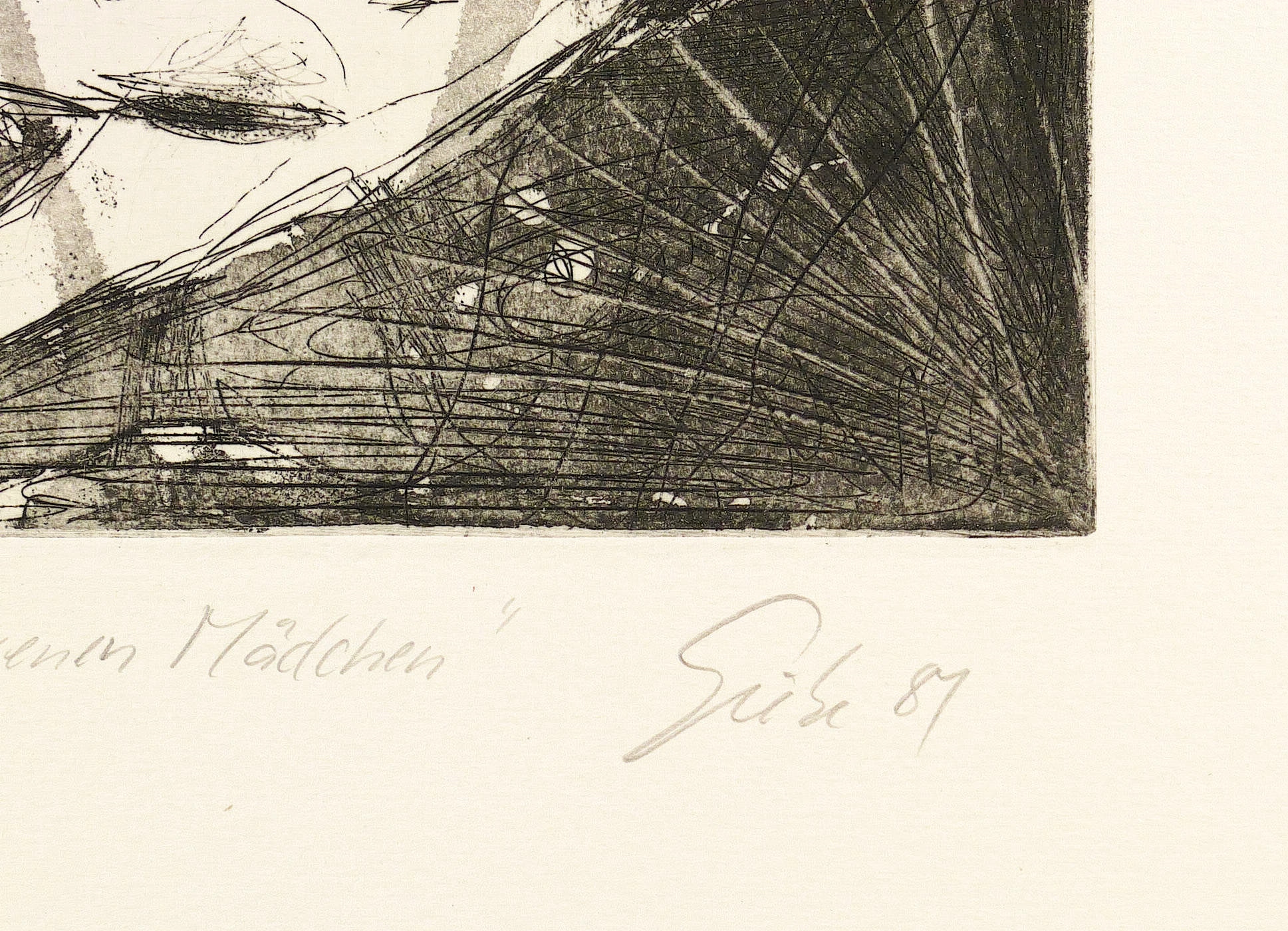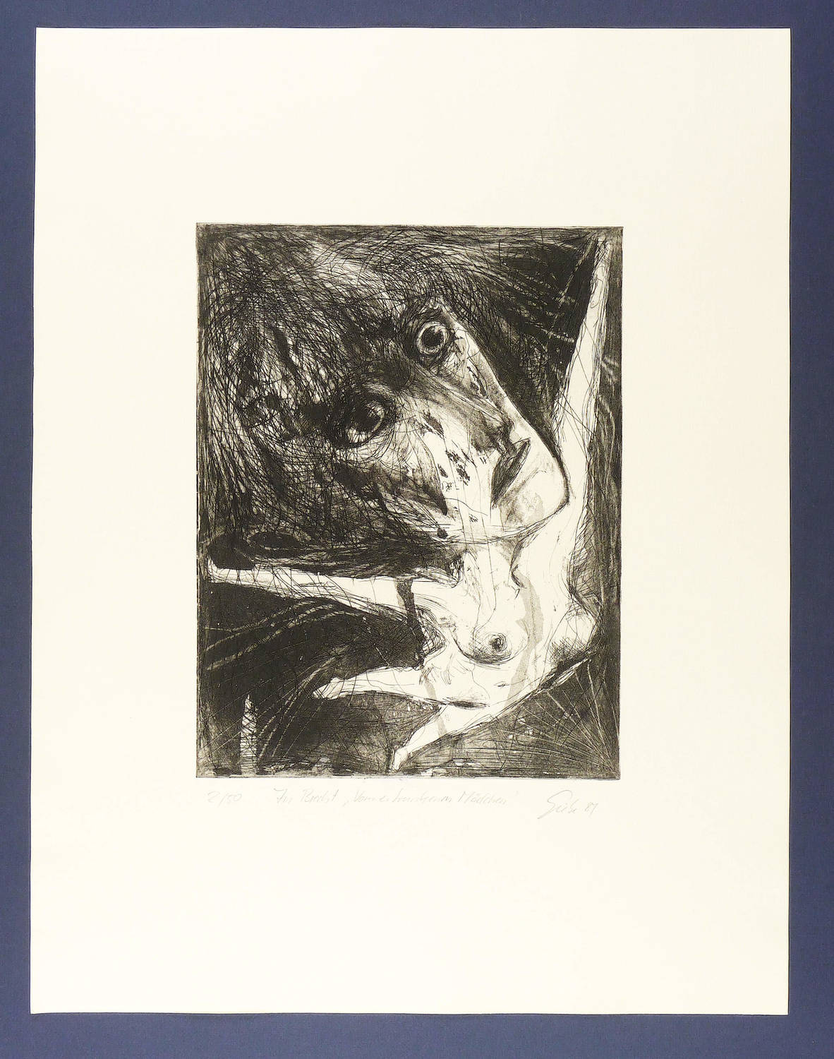 1981. Radierung / Aquatinta & Strichätzung, in Schwarz, auf hellgelbem Papier. – Originale Künstlergrafik, von Hubertus Giebe. – Auflage Exemplar Nr. 2/50. – 36,2 x 27,7 cm (Darstellung / Platte), 65 x 50 cm (Blatt).