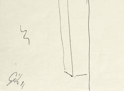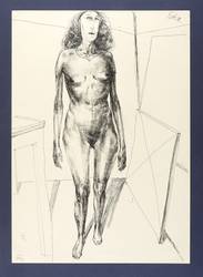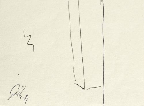 1982/1983. Zeichnung / Kugelschreiber, in Schwarz, auf gelblichem Zeichenkarton. – Originale Künstlergrafik, von Hubertus Giebe. – Unikat. – 59,5 x 42,0 cm (Darstellung / Blatt).
