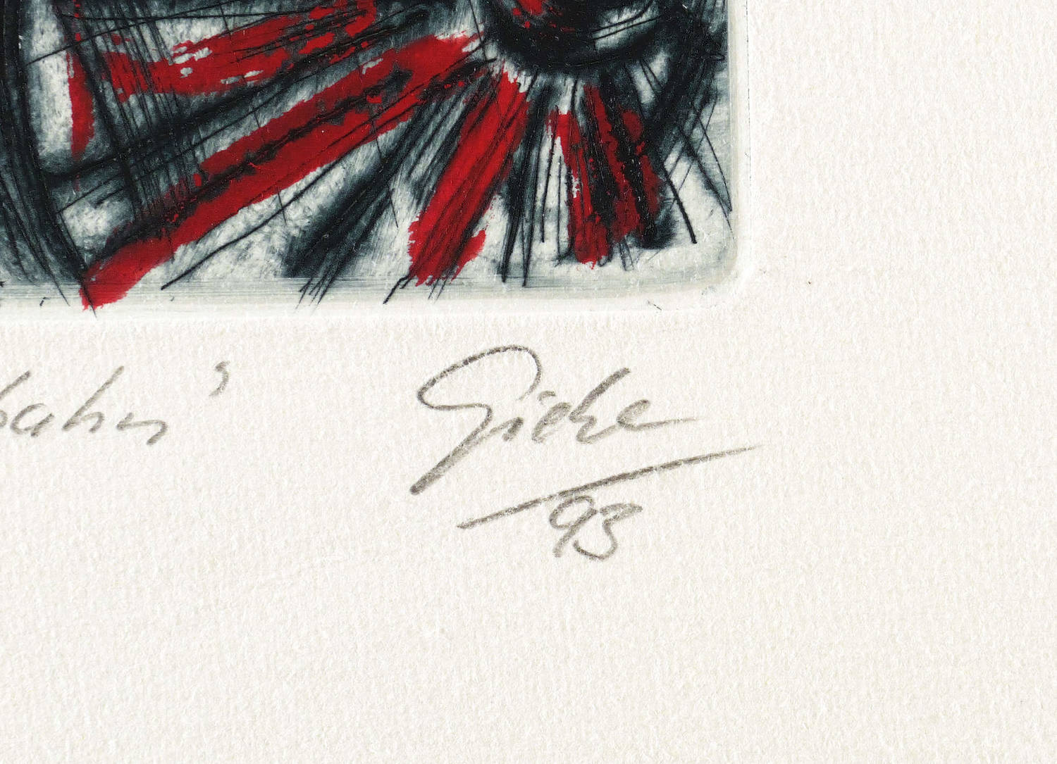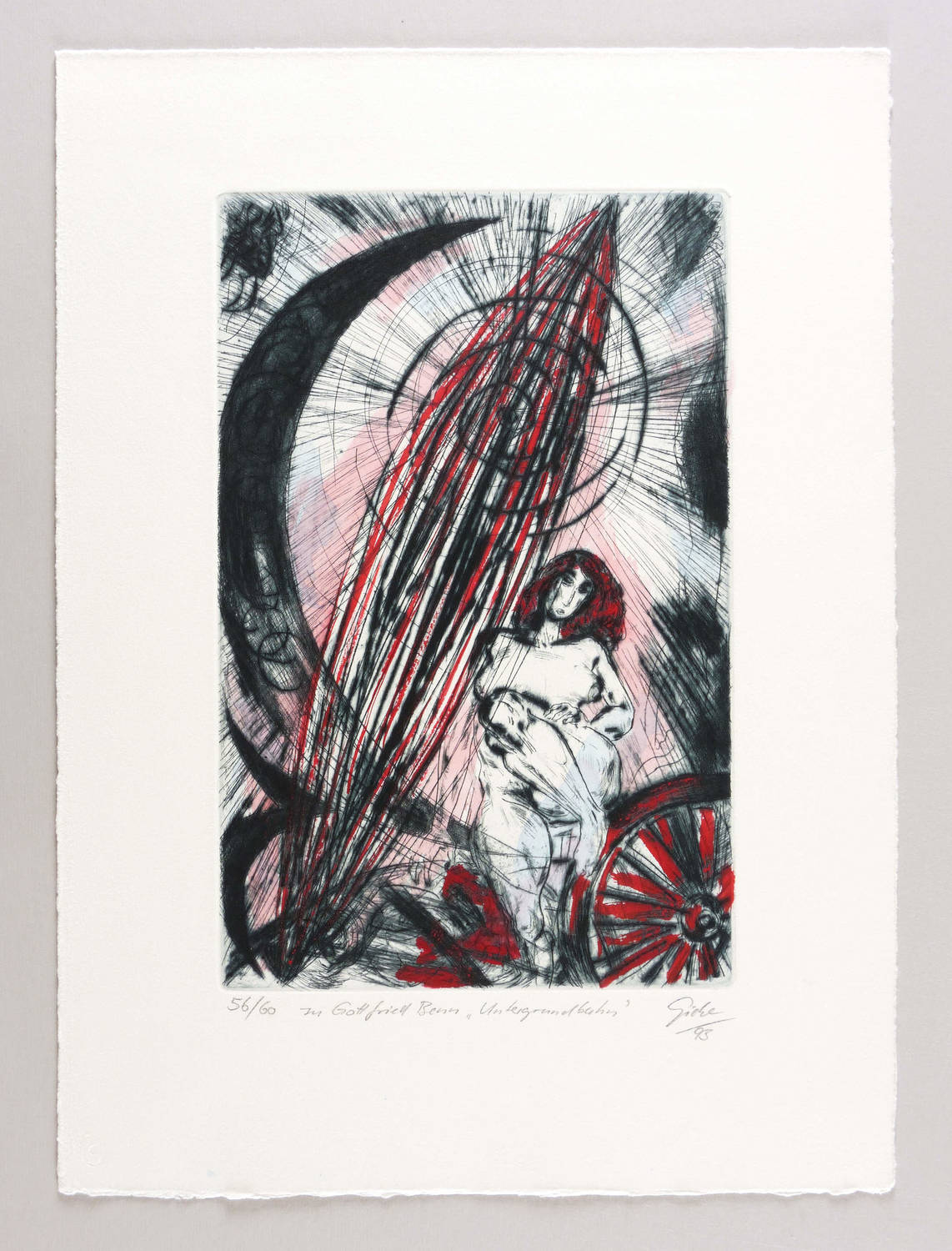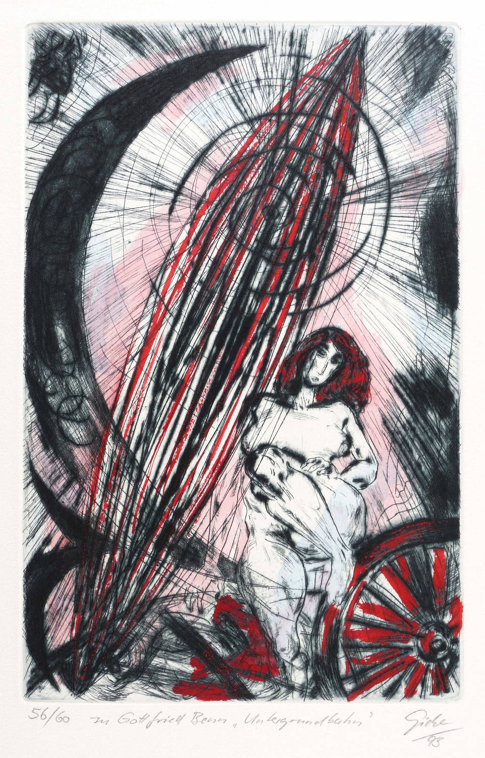 Rechts unten in Bleistift signiert und datiert: ″Giebe 93″. Links Auflagenbezeichnung und Titel: ″56/60 zu Gottfried Benn 'Untergrundbahn'″. – Sehr guter Zustand.