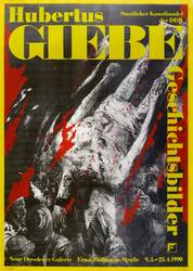 Rechts unten in Bleistift signiert und datiert: ″Giebe 90″. Links: ″Schuster″. – Originalgrafisches Künstlerplakat zur Ausstellung ″Hubertus Giebe. Geschichtsbilder″ der Neuen Dresdener Galerie in Dresden 9.3.-23.4.1990. – Tadellos. Sehr guter Zustand.