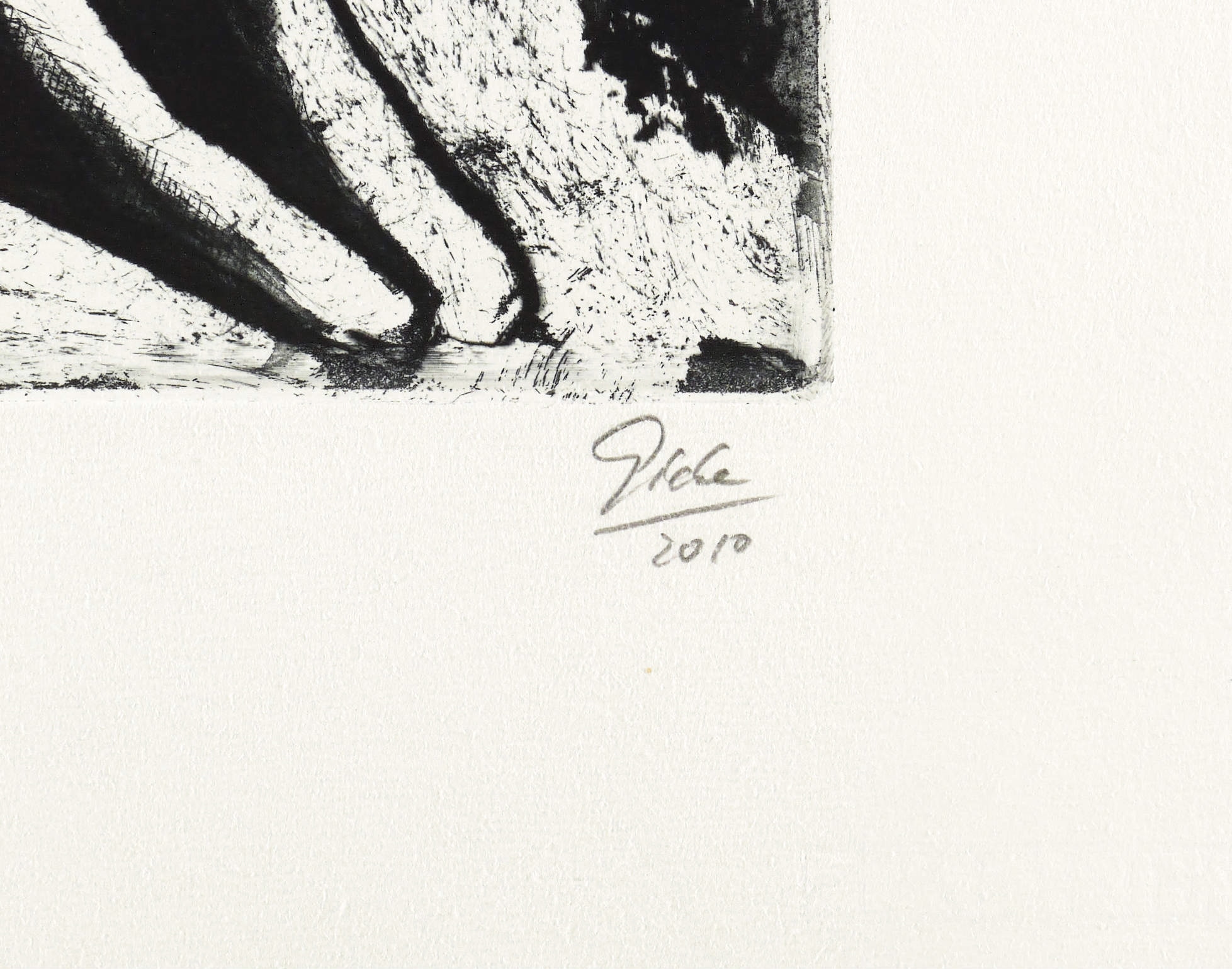 2010. Radierung / Strichätzung & Aquatinta, in Schwarz, auf schwerem hellchamois Hahnemühle. – Originale Künstlergrafik, von Hubertus Giebe. – Auflage Exemplar Nr. 7/8. – 49,6 x 61,3 cm (Darstellung / Platte), 64 x 85 cm (Blatt).